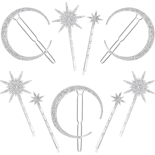 Frauen Kristall Seite Haar Clip Pins Metall Haarspangen Mädchen Haar Zubehör Sterne Mond Strass Clips Set Stern Haarnaln