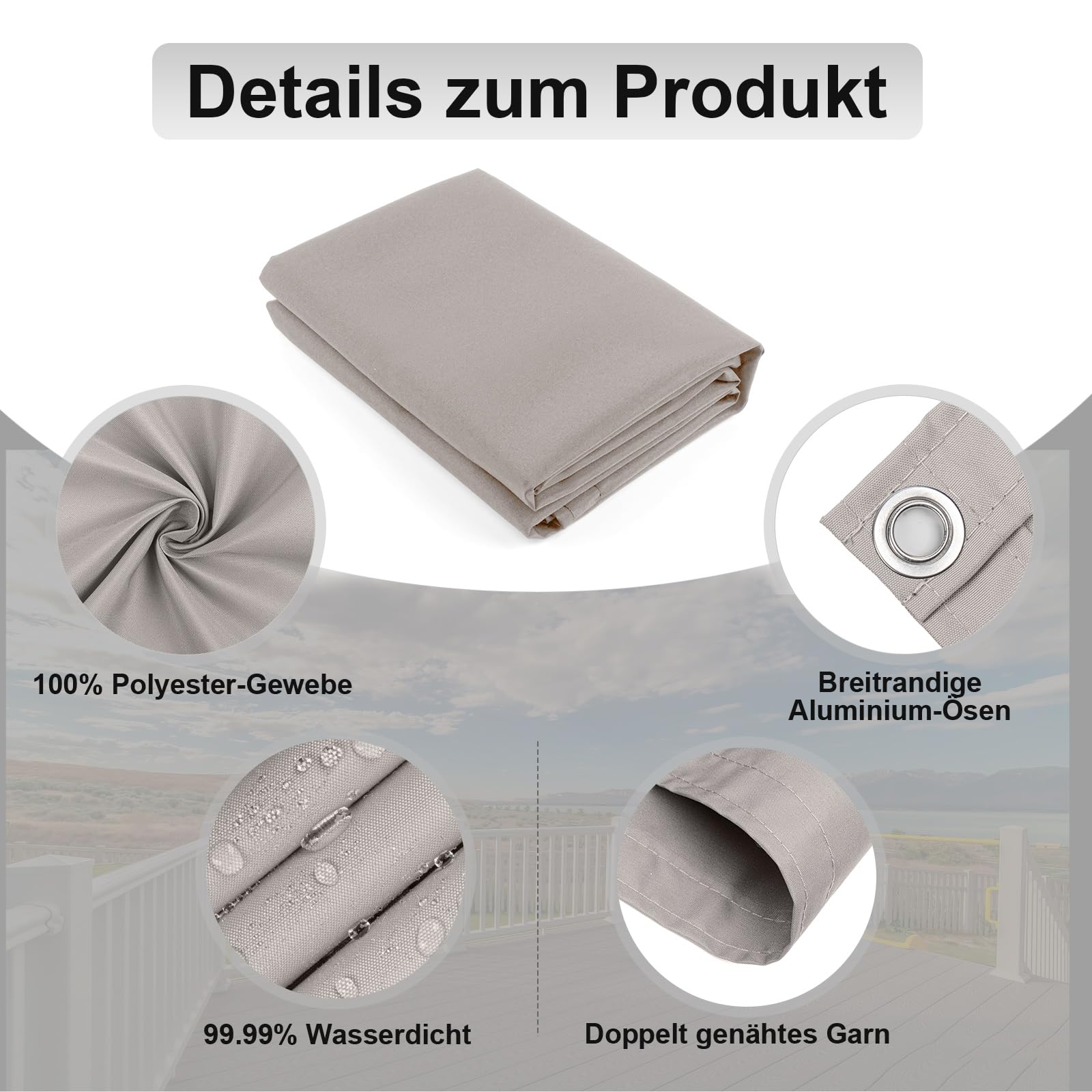 Der Balkon Sichtschutz UV-Schutz in den Maßen 90x500 cm bietet nicht nur einen attraktiven Blickschutz, sondern schafft auch eine elegante und gemütliche Atmosphäre, die das Verweilen im Freien noch angenehmer macht. Das wetterbeständige und pflegeleichte HDPE-Spezialgewebe schützt vor neugierigen Blicken, Wind und schädlicher UV-Strahlung. Das strapazierfähige Polyethylen mit hoher Dichte&hellip Lieferung: 1 x Balkon Sichtschutz, 1 x Beutelkabelbinder, 1 x Nylonschnur Wir werden Ihre Probleme für Sie lösen. Der beste Service: Wenn Sie während des Kaufvorgangs auf Probleme stoßen, können Sie sich gerne an uns wenden. Es wird nicht empfohlen, den Bildschirm zu trimmen. ROBAG Balkon Sichtschutz Balkon Sichtschutz Stoff, Sichtschutz Balkon Seitlich Blickdichte Wind- Und UV-Schutz Wetterbeständiges Und Pflegeleichtes, Für Gartenzaun Balkonzaun, 75x500cm, Grau HENG FENG Balkon Sichtschutz 55x1000cm PES, Wetterfeste Balkonverkleidung für den Außenbereich mit Windschutz und Sonnenschutz, Sand(Anpassung) - Kostenloser Versand ab 29 Wenn Sie jedoch der Meinung sind, dass die Installation nicht betroffen ist, können Sie sie anpassen. Die Farben auf den Fotos können je nach Monitoreinstellung von der tatsächlichen Farbe abweichen. Hinweis: Bitte halten Sie sich von offenen Flammen fern und ziehen Sie während der Installation nicht zu fest. Funktion: Schutz der Privatsphäre, Sonnenschutzmittel, UV-geschützt, winddicht, kühlend, sturmsicher, feuchtigkeitsspendend. Die massive Aluminiumschnalle in der Mitte der beiden Enden fehlt an beiden Enden. Machen Sie Ihren Außenbereich mit einem unserer fünf freundlichen Designs privater. Produktmerkmale im Detail: Hinterhof Patio Sichtschutz Sicherheit Kinder und sehr tierfreundlich, Balkon Sichtschutz schützt die Privatsphäre der Tiere und verhindert, dass Tiere schreien. Das Balkon-Sichtschutznetz ist einfach zu installieren. Der Zaun-Sichtschutz Weit verbreitet in Balkonen, Außenbereichen, Terrassen, Pools, Gärten, Innenhöfen, Dächern, Carports, Lagerhäusern usw. Schützende Zaunblende für Balkon, Terrasse, Pool und Gartenzäune. Der Balkon Sichtschutz bietet elegante Gemütlichkeit im Freien, schützt vor Blicken, Wind & UV-Strahlen.