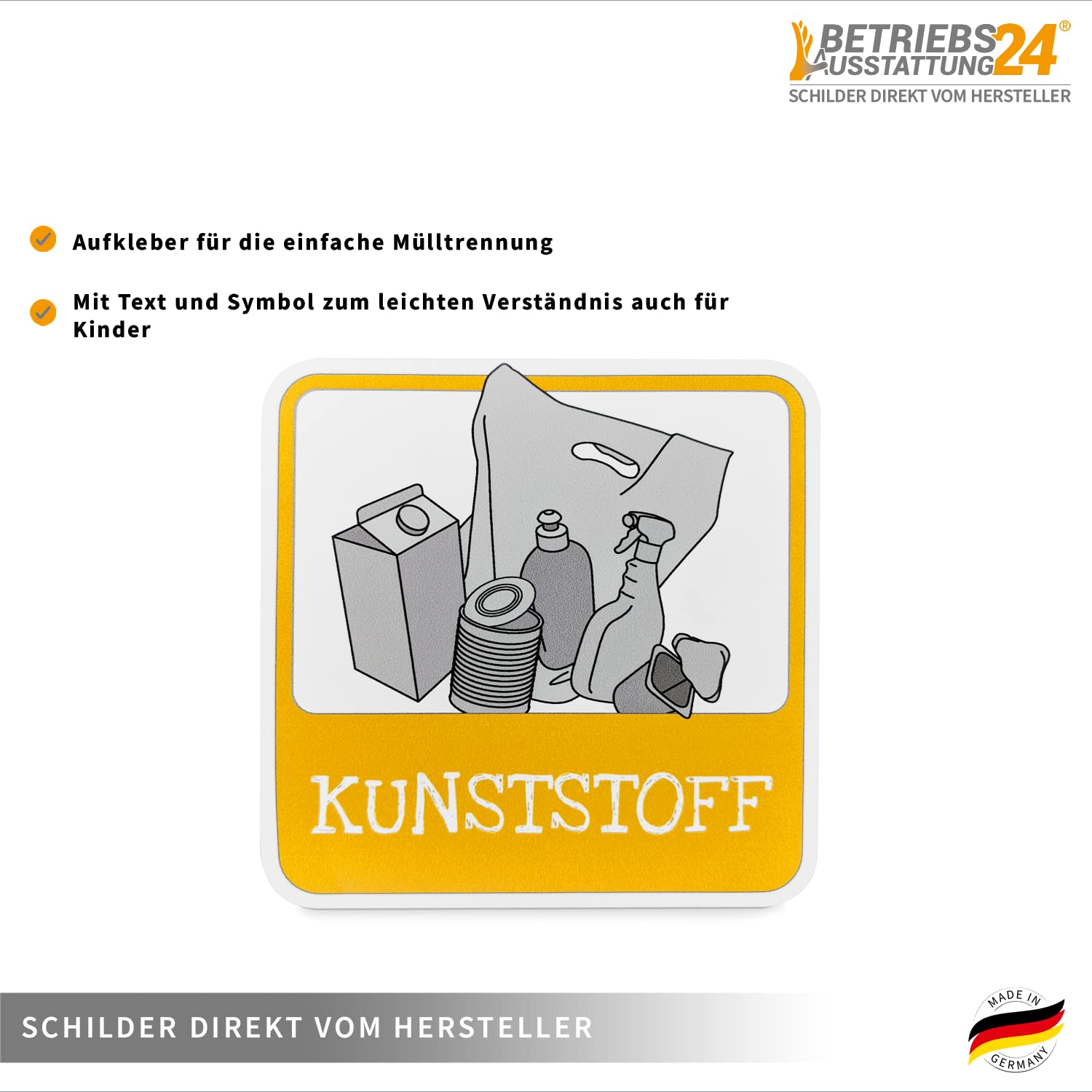 Wasserdicht: Ganz gleich, ob es regnet oder versehentlich etwas verschüttet wird, die Wasserfestigkeit der Mülltrennung Aufkleber sorgt dafür, dass sie intakt bleiben. Hohe Sichtbarkeit: Die Mülltonnen Aufkleber zeichnen sich durch einen einwandfreien Druck und leuchtende rote und grüne Farben aus. Starke Haftung: Der starke Kleber auf der gesamten Rückseite der Aufkleber Mülltrennung haftet auf einer Vielzahl von Oberflächen, einschließlich Metall, Holz und Kunststoff. Ob in belebten Bereichen oder ruhigen Ecken angebracht, die Klarheit der Aufkleber für die Mülltonne ist unübertroffen. Das hochwertige Material der Aufkleber verhindert ein Ausbleichen und Abblättern und vermittelt Ihre Botschaft lange. Die Aufkleber für die Mülltonne widerstehen allen Schäden durch Wasser und bleiben lange fest. Premium-Vinyl: Die Aufkleber für Mülltonnen bestehen aus Premium-Vinyl und gewährleisten Haltbarkeit und Langlebigkeit. Mülltrennung Mülltrennung sind praktische Helfer, die Ihnen dabei helfen, Ihren Müll richtig zu sortieren. Sie zeigen auf einen Blick, was in welche Tonne gehört. Kleben Sie die einfach auf Ihre Müllbehälter, und schon wird die Mülltrennung zum Kinderspiel Mülltonnen Beschriftung Mülltonnen Aufkleber Wunschaufkleber - Hausnummer - Selbstklebend Ideal Für Den Außenbereich Da Wasser Und Wetterfest Feuerlöscher Schild Sie sind so konzipiert, dass sie der alltäglichen Beanspruchung standhalten und dafür sorgen, dass sie fest an ihrem Platz bleiben. Unsere Aufkleber sind mit glänzender UV-Schutzfolie laminiert. Mülltrennung Schilder 10 Recycling-Aufkleber (10cm ) - Klare Mülltrennung Für Tonnen & Behälter Mülleimer Aufkleber Attraktiv und praktisch: DIY-Aufkleber können Ihren Mülleimer so gestalten, dass Sie Ihren Müll besser klassifizieren können. - FarbeSilber - Material: PVC - Größe: 40,00 x 30,00 x 0,30 cm/15,72 x 11,79 x 0,12 Zoll - Abfallbehälter Aufkleber aus PVC-Material mit guter Klebekraft, leicht anzubringen und abzuziehen