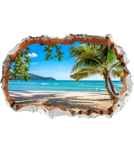 AUVS® 3D- Selbstklebende Abnehmbaren Durchbrechen Die Mauer Vinyl Wandsticker / Wandgemälde Kunst Aufkleber Dekorateur (8001F Kokosnuss Meeresstrand (60 * 90cm