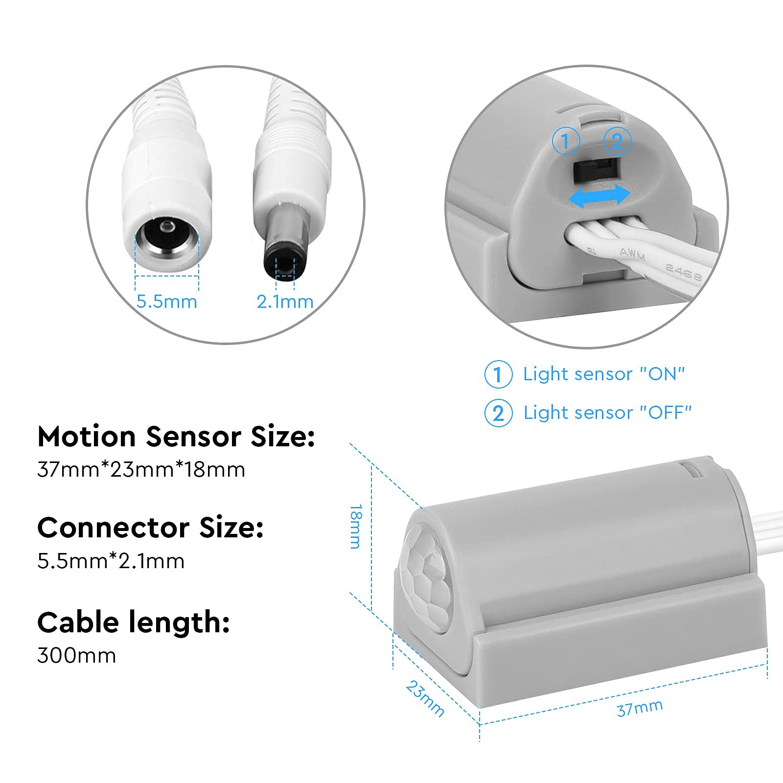Nur für den Innenbereich. Durch Drücken des kleinen Knebels können Sie den Lichtsensor einschalten. Es wird ständig eingeschaltet, wenn es ständig Bewegungen erkennt., Einfach zu installieren. Durch die Verwendung dieses Bewegungssensorschalters zusammen mit dem Litever LED-Lichtleisten/-streifen-Set können Sie ganz einfach eine bewegungssensorierte LED-Beleuchtungsstreifen für Ihre Küchenschränke, Speisekammerschränke, Waffensafe usw., selbst gestalten. Dieser bewegungsaktivierte Sensorschalter kann durch die mitgelieferten selbstklebenden Pads oder Schrauben montiert werden., Lichtsensor-Funktion optional. Eingangsanschluss: DC 5,5 x 2,1 mm Buchse mit 30 cm Kabel., Ausgangsstrom: maximal 3 A. Wenn es hell ist, bleibt der Schalter ausgeschaltet. IR-Sensorschalter für Schränke und Schubläden 12V-24V max. 2A rund zu Mini Bewegungsmelder 230v Litever PIR Motion Sensor Switch Grey DC6~24V 3A DC 5.5x2.1mm Male Bewegungsmelder Klein Litever Motion Activated Sensor Switch Specifications: Eingangsspannung: OK von 6 V DC bis 24 V Gleichstrom. Bewegungsaktivierung Dieser Schalter startet automatisch, wenn er Mensch / Tier Bewegung erkennt. DC12V Dimmer Schalter,RV LED Dimmer Schalter,2 Gang 120W 5A PWM 12V-24V Dimmer,Drehbarer RV Lichtschalter für Camper/Motorhome/Boot/Van/Truck/Einfarbige Lichtstreifen/Puck Lights/Vormarkisen Lichter Ausgangsanschluss: DC 5,5 x 2,1 mm Stecker mit 30 cm Kabel., Erkennungsreichweite: maximal 3 Meter., Erfassungswinkel: maximal 120 °., Verzögerungszeit: 15 Sekunden., Arbeitsumgebung: -10 ℃ - 35 ℃. PIR Bewegungsaktivierter Sensorschalter Mini DC6-24V 5A Auto On / Off Detektor für LED-Lichtleiste. 1x Sensorschalter. Statischer Strom: < 50uA. Klein, leicht, einfach zu installieren und zu bedienen, Plug and Play