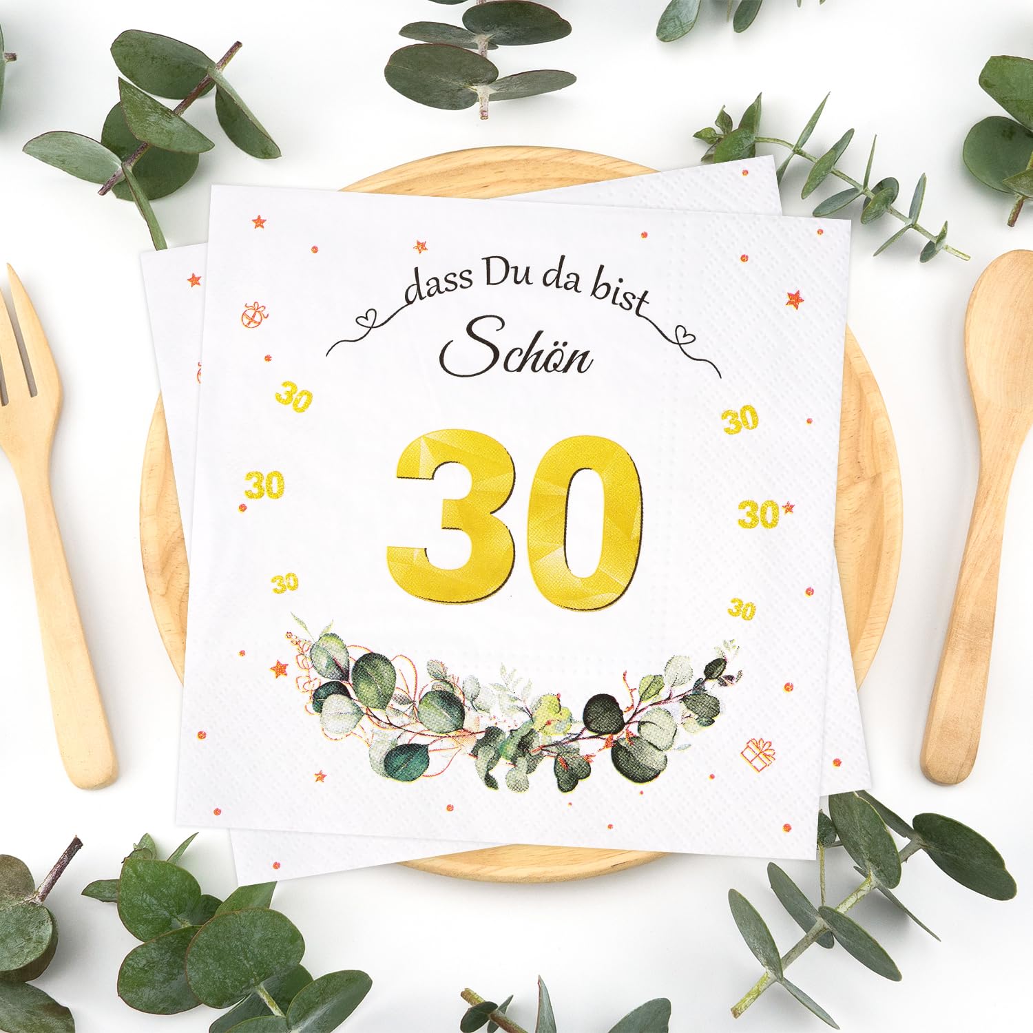 Servietten 30 Geburtstag,20 Stück Papierserviette Geburtstag,33 X 33 Cm