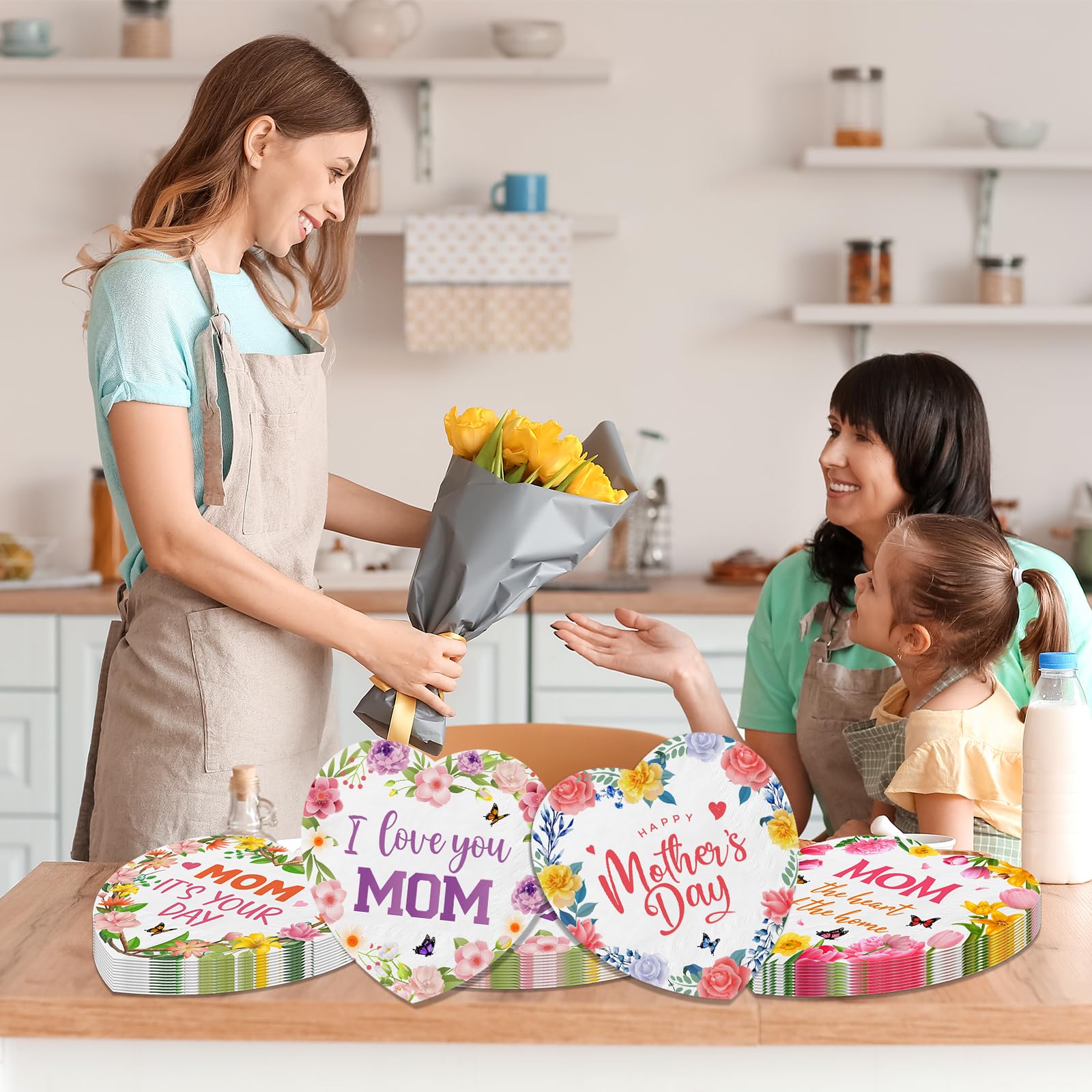 und kann auch als gewöhnliche Servietten für Ihr Zuhause verwendet werden Muttertagsdekorationen, 96 Stück, Muttertagsservietten, Happy Besonderheiten: Exquisites Design: 100 Stück Gästeservietten sind Muttertagsmotiv und haben ein florales Design, perfekt für Muttertag und andere Veranstaltungen. Toller Tischbedarf: Unsere handabwischbaren Servietten haben die richtige Größe, was Ihre Feiertagsparty-Tischplatte sauber und lustiger macht, mit diesem Set dekorativer Servietten, perfekt für Feiertage, Essen, Cocktails usw., Produktmerkmale: Material: Papier. Breiter Anwendungsbereich: Geeignet für Muttertag, Mottopartys und andere Anlässe, ideal zum Essen, für Handreinigung, Getränke usw. Hübsches Design: Unsere Papierservietten sind mit Blumen und den Worten Happy Mother's Day bedruckt, passend zum Thema Muttertag, geeignet für den täglichen Gebrauch und Partygebrauch Vorteilspackung: Jede Packung enthält 50 3-lagige Einweg-Papierservietten. Größe zusammengeklappt: Jede Serviette misst 16,5 x 16,5 cm und ist ideal für Abendessen und Mittagessen, die den Muttertag feiern Servietten Konfetti Servietten Gefaltete Servietten - Österreich Bienen Servietten Ausreichende Menge: 100 Stück Gäste-Servietten sind im Paket, ausreichende Menge und hübsches Design, wodurch sie für Partys und Esstische geeignet sind Diese Muttertagsparty-Papierservietten können für eine Vielzahl von Geburtstagen, als Partyzubehör für Mütter und mehr verwendet werden. Ideal für Tischdekoration und Reinigung, perfekt für Essen, Cocktails, Getränke und andere Getränke