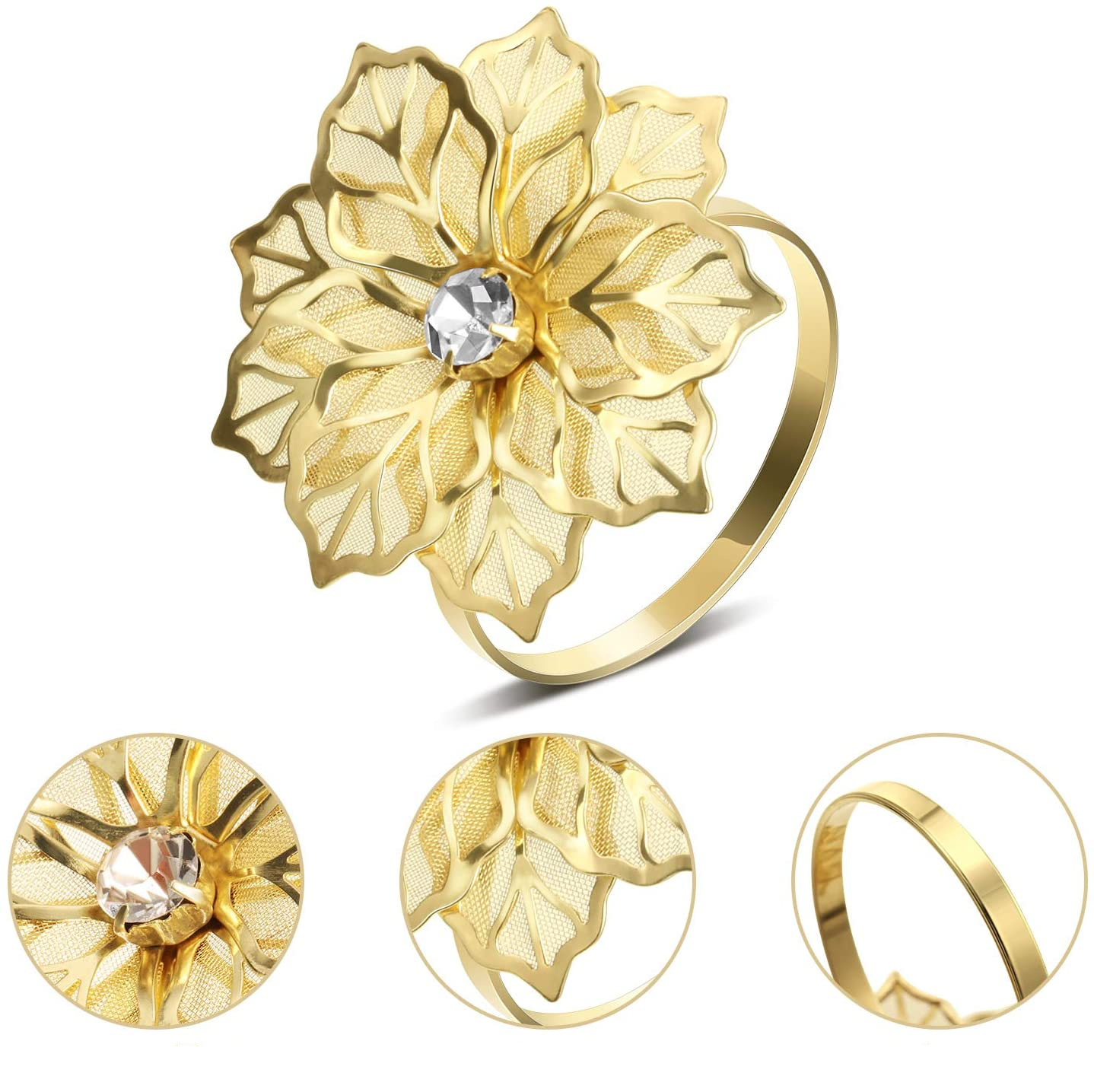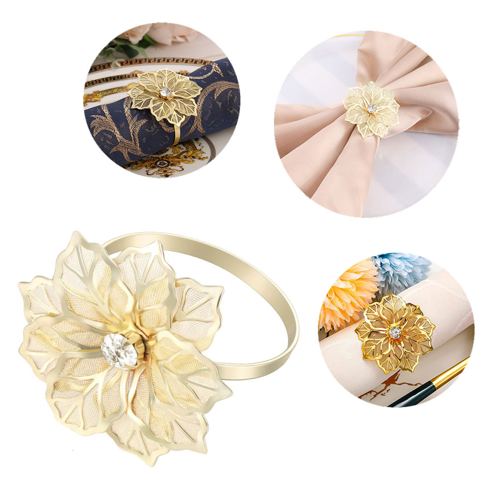 Jaugufiy Runder Goldfarbener Serviettenhalter Aus Metall Mit Blume