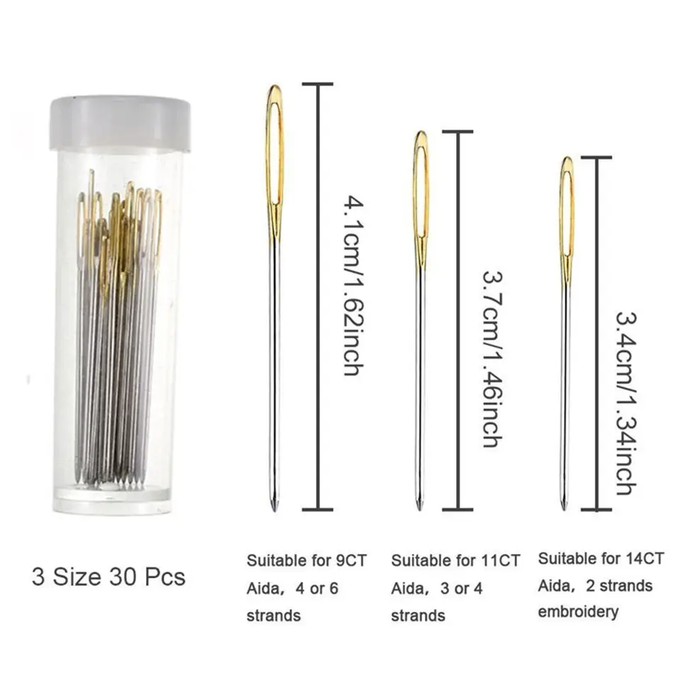 120 Stück Kreuzstichnadeln 22 & 24 & 26 & 28 Gauge stumpfe Spitze Nadel Nadeleinfädler, 2 Stück - Zubehör von OPITEC Österreich GmbH Farbe: Gold und Silber., Material: Edelstahl. Packliste: Kreuzstichnadel-Set:24 Nadeln X100 + Einfädler X2 + Box X1 【Anwendungen】 Die Nadeleinfädler erleichtern das Durchstechen und Perlen, geeignet für verschiedene Größen von Nadeln und Perlen. Eigenschaften: 100 Stück Kreuzstichnadeln bieten reichlich Vorrat für verschiedene Bedürfnisse, sodass Sie eine pro Farbe für große Kreuzstichprojekte behalten können. Alle modischen Inspirationen & die neuesten Trends finden Sie online bei SHEIN Kaufen Sie 20 Stück / 60 Stück / 100 Stück Edelstahl-Einfädler für Kreuzstich-Stickerei, Nähwerkzeug für Große-Augen-Nadeln, Manuelles DIY-Nähen mit Transparenter Box auf ein. Entdecken Sie weitere tolle Preise auf Arts, Crafts & Sewing Verfügbare Größen: 22 # (ca., 40 mm), 24 # (ca., 38 mm), 26 # (ca., 34 mm), 28 # (ca., 32 mm) Handnähnadeln Set, 100 Stück, Große Öse, Kreuzstich Nähnadeln Mit Aufbewahrungsbox, Nr. 26