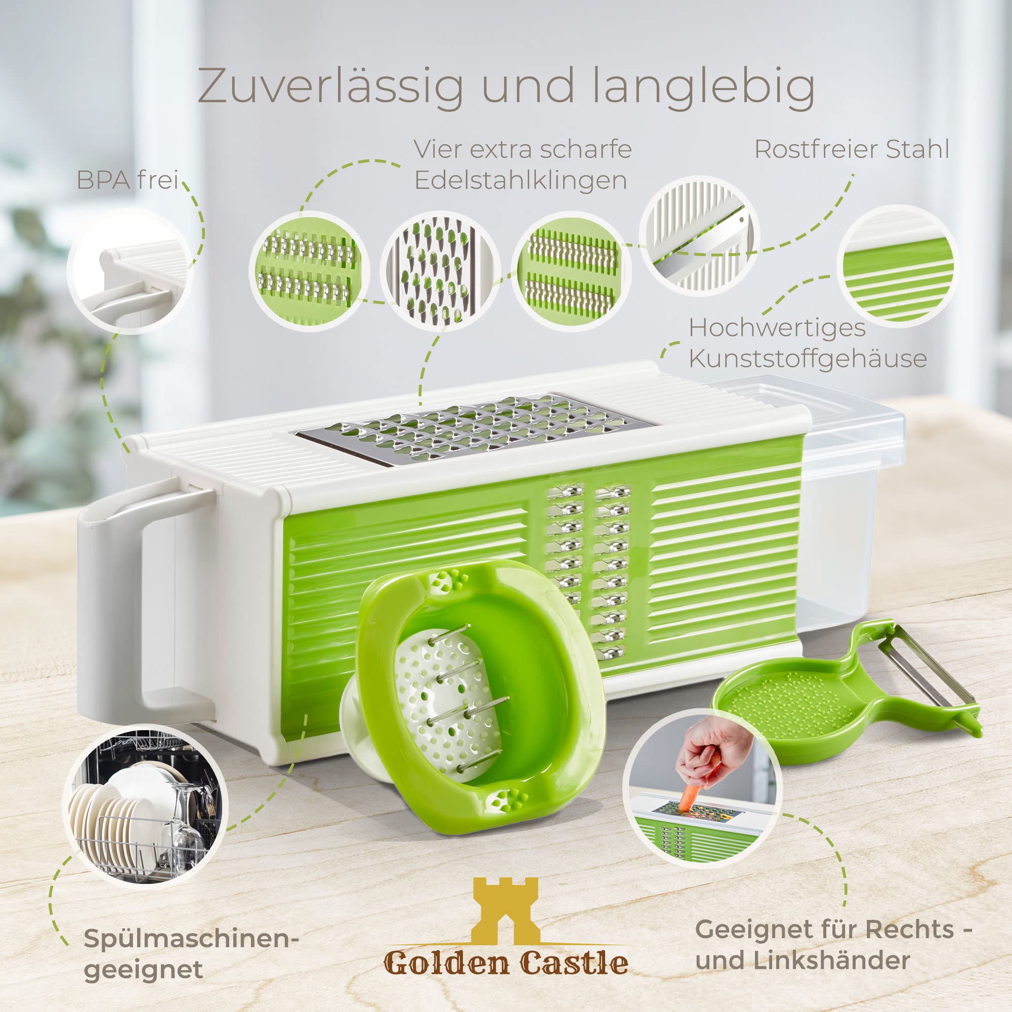 Geeignet zum Schneiden von Obst und Gemüse, klein und exquisit, leicht zu waschen und aufzubewahren, bequem später zu verwenden. Spezifikation:Zustand: 100% nagelneuArtikeltyp: ReibeMaterial: ABS + Edelstahl 420Farbe BeigeHauptkörpergröße: Ca. Gemüsehobel Elektrisch Edelstahl, 1000W Multi Gemüseschneider Gemüsereibe Küchenreibe Gemüseraspel mit 10 Klingen,Leicht zu Reinigen, Reibe für Gemüse Börner Gemüsehobel V1 (Basis Set) • V-Hobel mit 2 Einsätzen & Fruchthalter • Verstellbarer Küchenhobel für Gemüse & Obst • Gemüseschneider für Scheiben in 3 Stärken • Farbe Mehrzweck Gemüsehobel Mehrzweck Gemüseschneider Set – 7 In 1 Verbesserter Gemüseschneider Reibeschneider Schredderschneider Reibe Für Gemüse 483g/17ozPaketliste:1 x Hauptkörper 3 x Klinge1 x Handschutz Hinweis:1., Bitte erlauben Sie 0-2 cm Fehler aufgrund der manuellen Messung. esser, Teile Zubehör/Messer/Cutter Universalmesser 36 x 12,5 cm/14,2 x 4,9 ZollHandschutzgröße: Ca. Der verdickte ABS-Kunststoffboden, das weiche, rutschfeste, stabile Handschutzwerkzeug kann die Hände vor Verletzungen schützen. 15,5 x 12 cm/6,1 x 4,7 ZollGewicht ca. HOMELUX Zerklenerer Multzerklenerer Zwebelschneder mt 1.2L Groß... Hohe Qualität mit erschwinglichen Preisen.