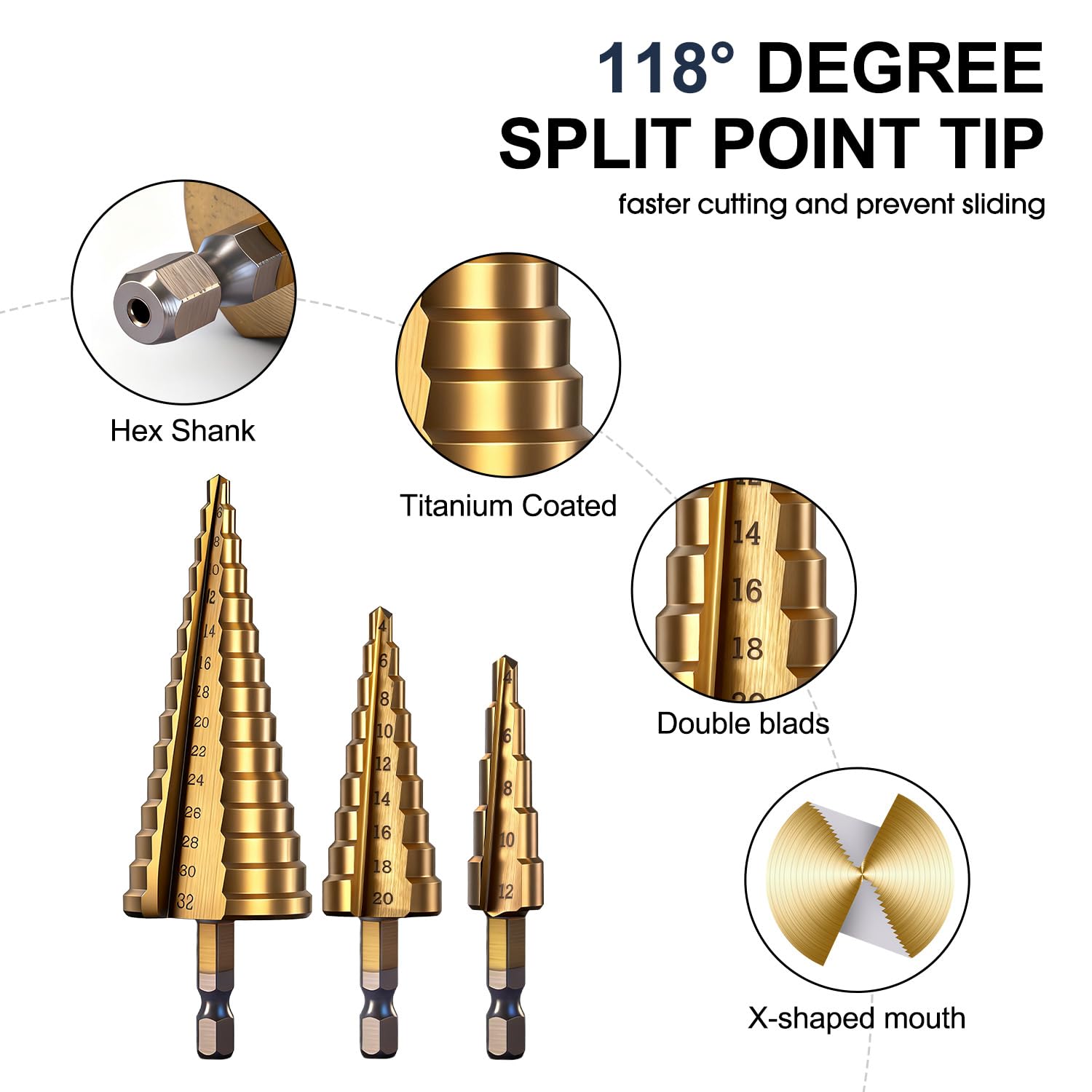 Sparen Sie Zeit und Mühe. Stufenbohrer Metall Set Aus 3 Titanbeschichteten HSS-Stufenbohrern, 1/4"-Sechskantschaft Bit Bohrer Set International products have separate terms, are sold from abroad and may differ from local products, including fit, age ratings, and language of product, labeling or instructions. Stufenbohrer Set in verschiedenen Größen, gefertigt mit einer extrem harten Titannitrit-Beschichtung (TiN). Durch die hochwertige TiN-Beschichtung sind die HSS Kegelbohrer hitzebeständig, verschleißfest und gewährleisten lange Standzeiten sowie eine lange Lebensdauer ✅ 6,35 mm Sechskantantantantriebe sind geeignet für alle Arten von Bohrmaschinen, geeignet für Holzbearbeitungswerkzeuge. ✅ Perfekter Stufenbohrer für Heimwerker und allgemeine Bauaufsicht / Ingenieurwesen. Winkelschleifer Griffe haben wir ebenso im Shop Stufenbohrer Set 6 Pcs HSS Stufenbohrer Set 5 Stück Kegelbohrer(4 Hersteller/EU Verantwortliche Person