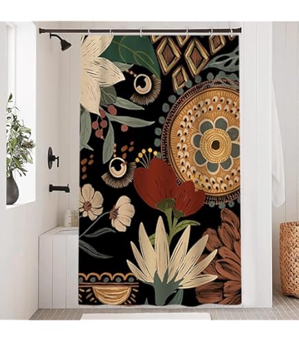 Uphome Boho-Duschvorhang, Hellbeige, Stoff, Geometrisches Tribal-Badezimmervorhang-Set Mit Haken, Schicker Südwest-Ethno-Badevorhang, Verbesserte 160 G/m², Strapazierfähig, 152 X 183 Cm
