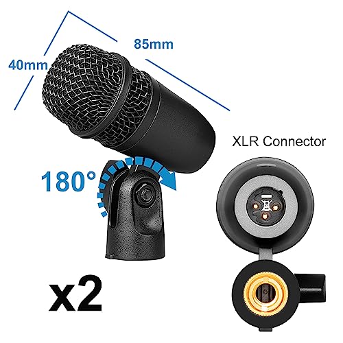 Tiwa 7-teiliges Dynamisches Drum-Mikrofon-Set Mit Kabel, Vollmetall, Kick- Bass, Tom/Snare & Becken, Für Schlagzeug, Gesang, Andere Instrumente, Komplett Mit Fadenclip, Mikrofon-Halter, Einsätze