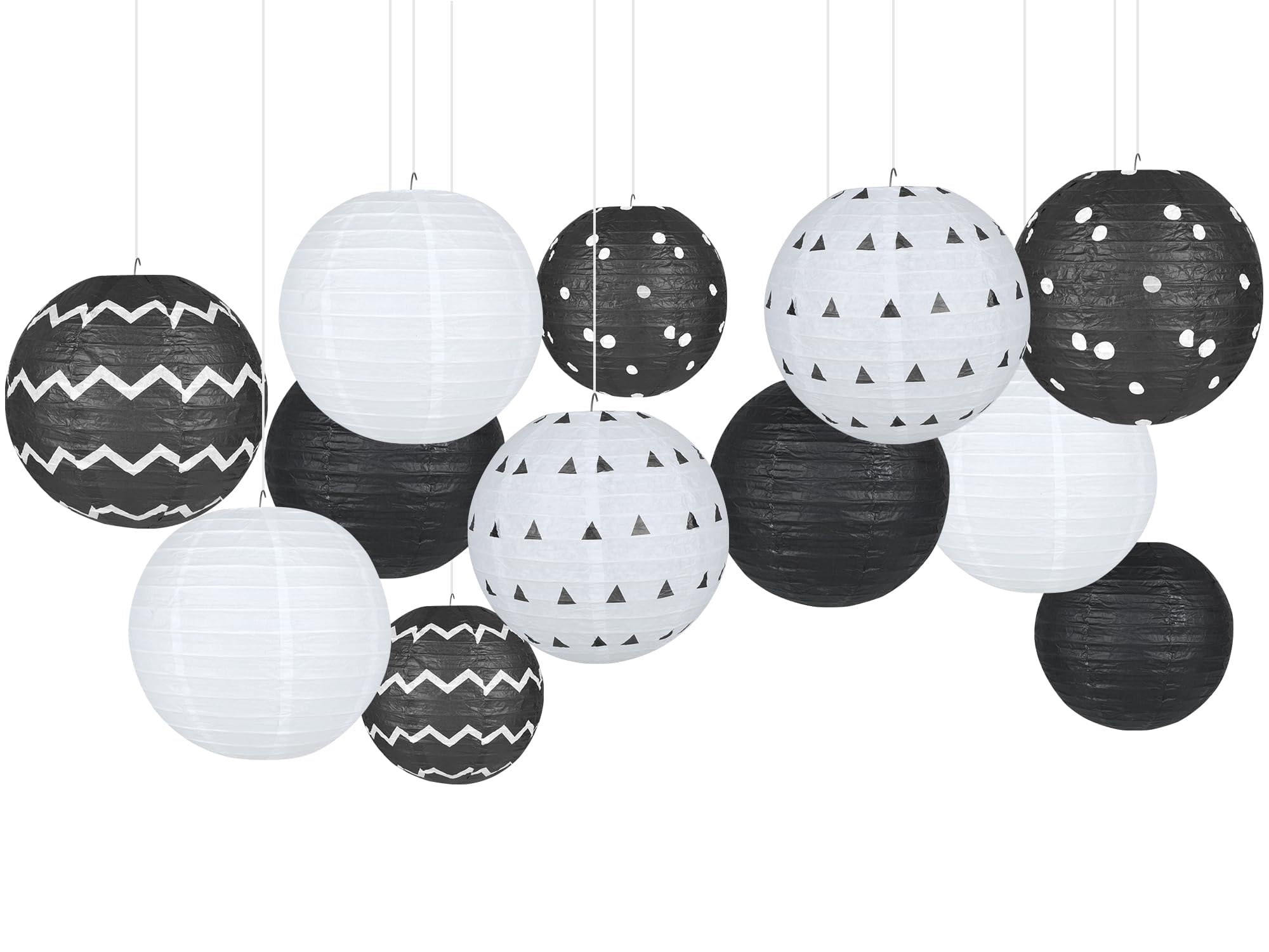Papierlaternen-Set, Papierlaternen-Set, Schwarz Und Weiß, Hängende