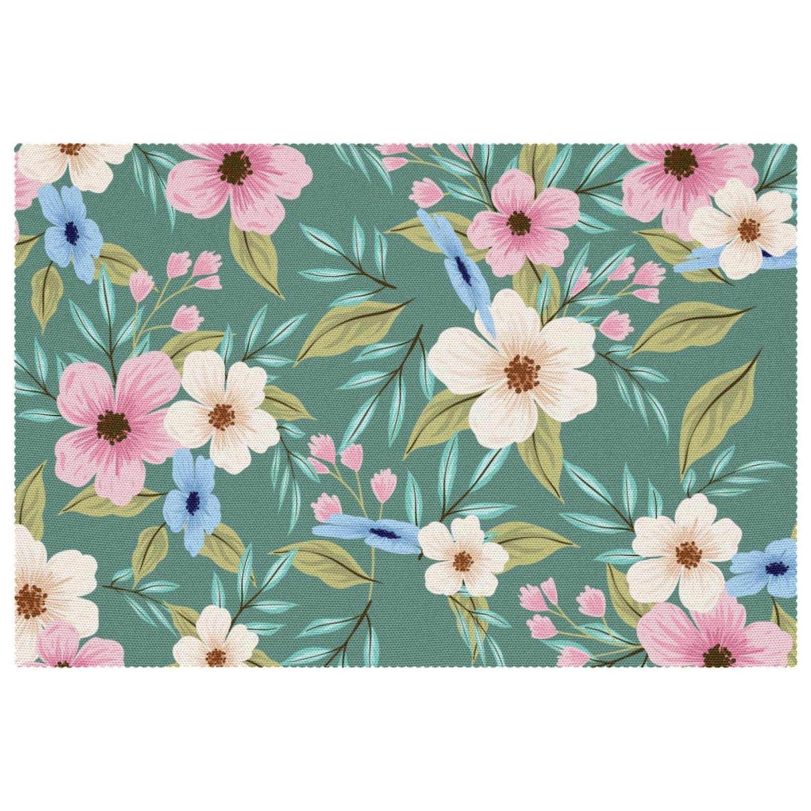 Blaue Blumen PVC Tischset 6er Set Platzsets Abwaschbar Esstisch Matten Rutschfest Küchenmatte Hitzebeständig Platzset Für Innen Außen Tisch