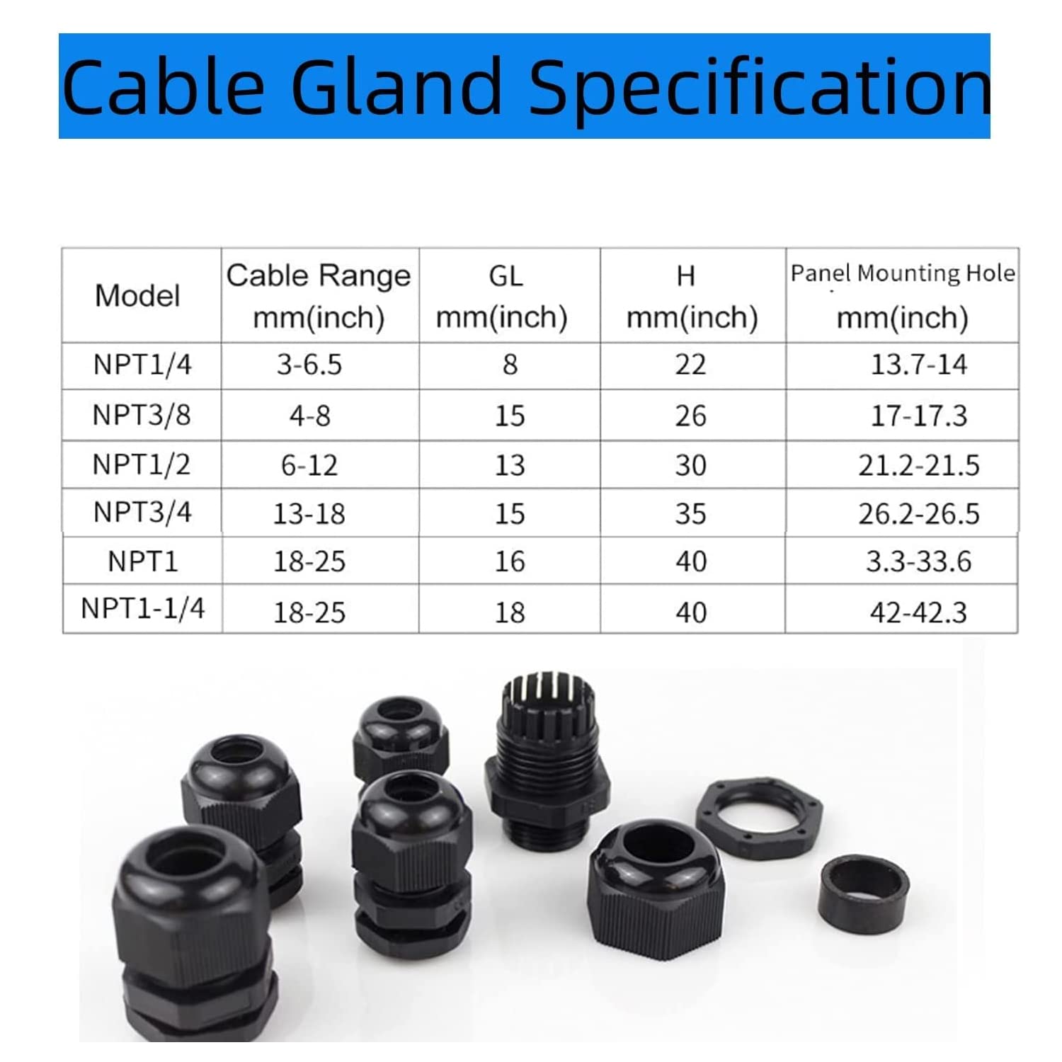 Zugentlastung Für Kabel 30 Stück Kabelverschraubung Set, Upgrade e Kabeldurchführung Wasserdicht 3/8 NPT NYLON Cable Gland, Waterproof IP68 Adjustable Locknut for 5-10M EUR 14,33 - DE NPT Typ 3/8 Zoll: Passend für NPT Typ 3/8 Zoll Gewinde. Schutzart IP68: Mit einer wasserdichten Schutzart IP68 bieten diese Kabelverschraubungen hervorragenden Schutz vor Wasser, Staub und anderen Umwelteinflüssen. Die Schutzart IP68 sorgt für maximalen Schutz vor dem Eindringen von Wasser und Staub und ist somit ideal für den Einsatz in Außenanwendungen. Diese Kabelverschraubungen sorgen für eine sichere und dichte Abdichtung Ihrer Kabel. Das flexible Rohrdesign dieses Kabelverschraubungssteckers erleichtert die Installation und Verwendung, und das Kabelfixierungsdesign sorgt für eine sichere Verbindung und verhindert ein Verrutschen des Kabels. Mit einer Schutzart von IP68 ist die Kabelverschraubung vollständig staubdicht und geschützt gegen dauerhaftes Untertauchen in Wasser. Sie hält Temperaturen von -40 bis +100 °C stand und ist halogenfrei, was sie zu einer umweltfreundlichen Wahl macht Überlegene Qualität – Unsere Kabelverschraubungen sind aus hochgradiger Zugfestigkeit und Zähigkeit PA66 Material, effektiv resistent gegen UV-Strahlen, Feuchtigkeit, Wasser und gewöhnliche Lösungsmittel und bieten langfristigen Schutz für Ihre Innen- und Außenanwendungen Store New Arrivals Add to Favorite View Feedback Contact 3/8 NPT Nylon Cable Gland, Waterproof IP68 Adjustable Locknut for 5-10M Description Item model number QL-3/8" NPT Part Number QL-3/8" NPT Style Modern Size 3/8" NPT 12pcs Color Black Material Nylon, Plastic, Rubber Batteries Required? No Item Weight 4.2 ounces 406236759148 【Hochwertiges Material】 Hergestellt aus Nylon PA66 Kunststoff, ist dieses wasserdichte Kabelverschraubungs-Set langlebig, korrosionsbeständig und hält extremen Temperaturen stand.