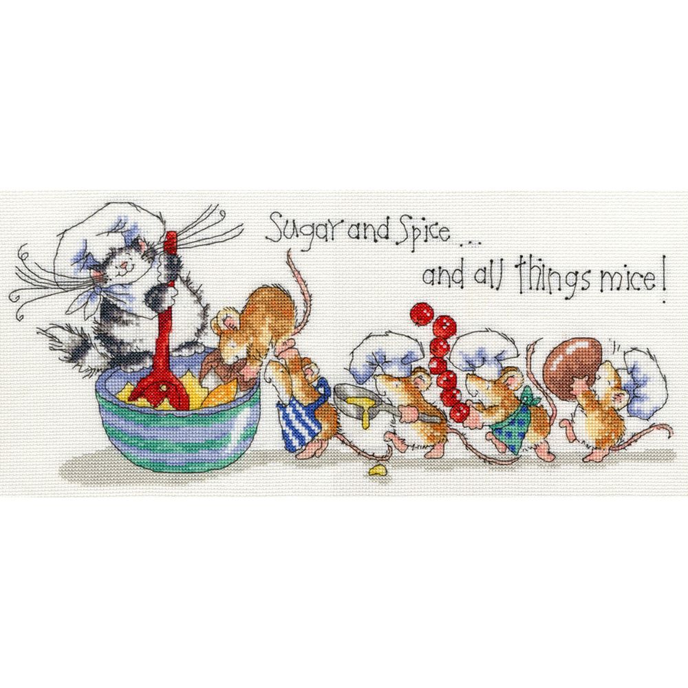 Fertige Größe: 53x18cm , Zählbarer Set , Komplettset zum Selbersticken Inhalt: Handarbeitsstoff Zweigart Aida 14 weiß, (100% Baumwolle), Stickgarn Mouline (100% Baumwolle), Zählschema, Nadel, Foto, Anleitung in Englisch, Klettverschluss, Schneeflocken-Pailletten Originalname: Merry Catmas Hochwertige Materialien, perfekt als Geschenk Bothy Threads Kreuzstich Set "Merry Catmas", Zählmuster, XMS30, 53x18cm