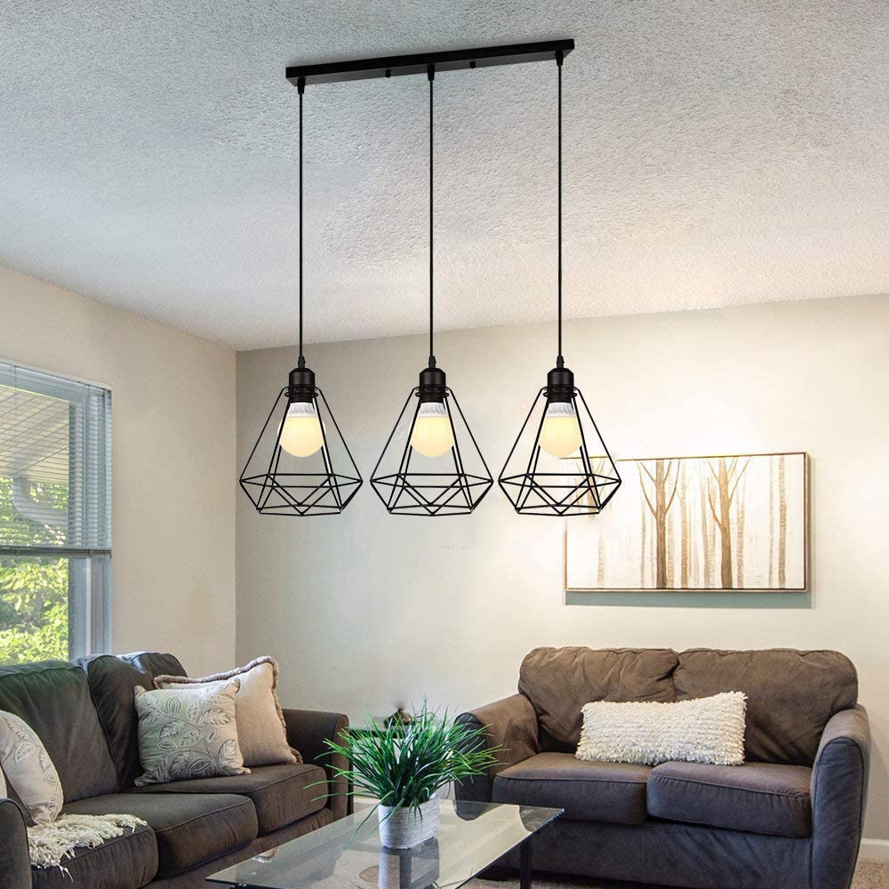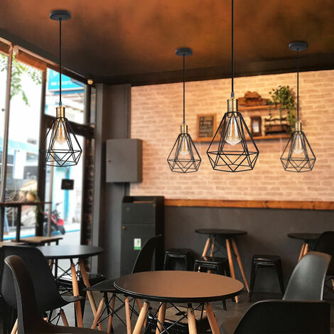 LEDSone Vintage Industrial Diamond Shape Metal Cage Pendant Lamp
