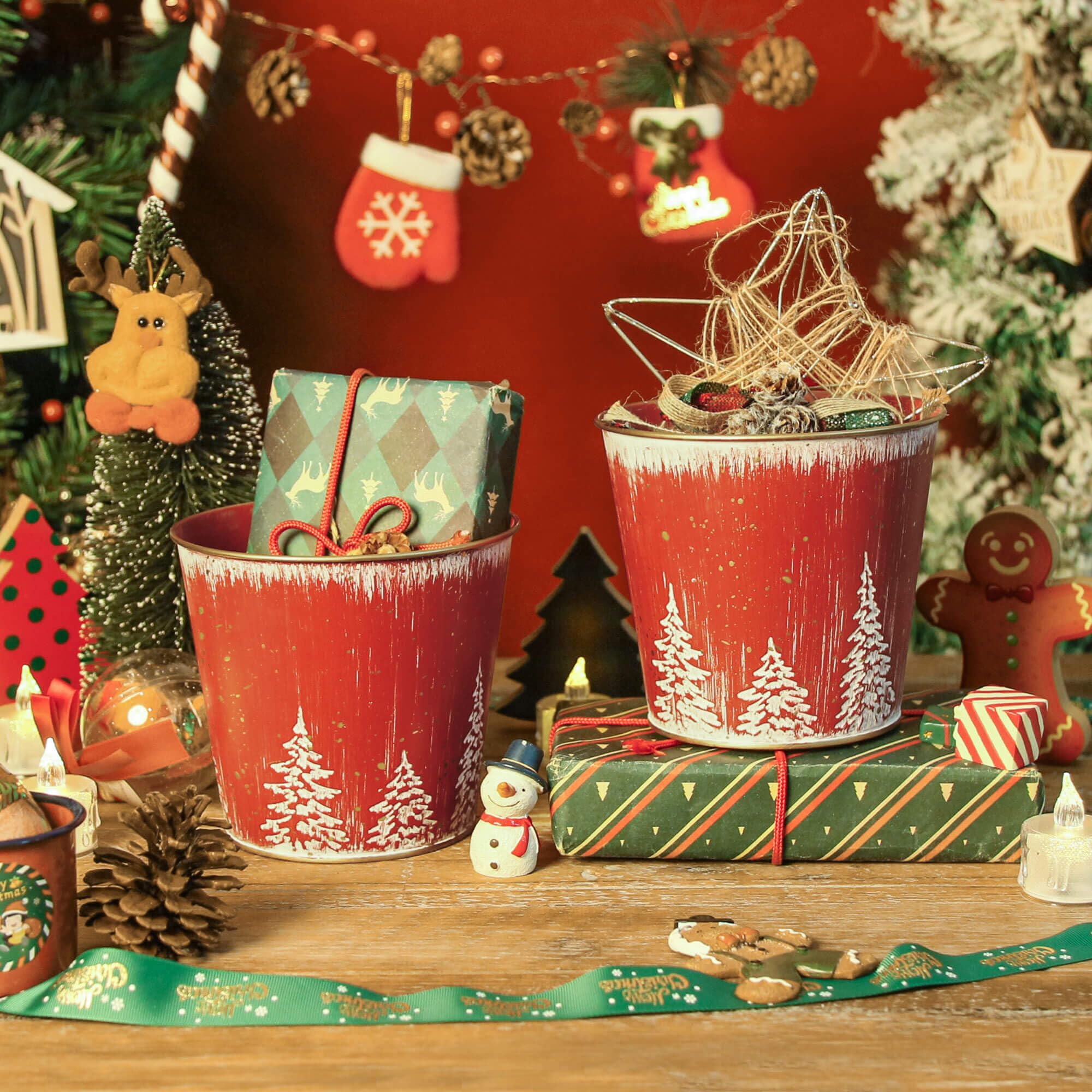 Shappy Weihnachts-Metall-Eimer Mit Griff, 15,4 X 11,4 X 14 Cm, Weihnachtsdekoration, Verzinkter Eisen-Eimer Für Zuhause, Weihnachten, Party, Tischdekoration, 10 Stück