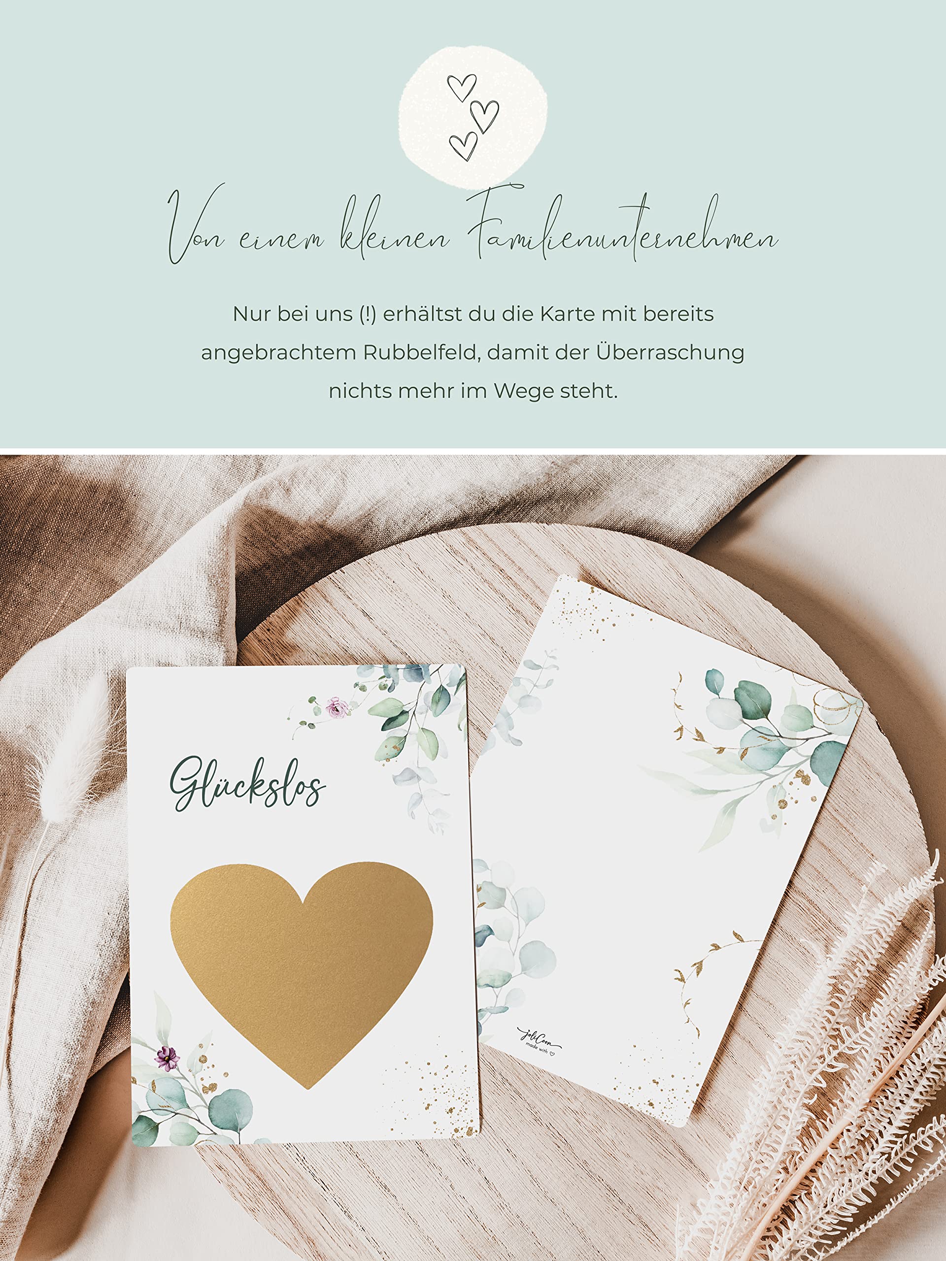 Einzigartige Rubbelkarten für unvergessliche Momente., ., ., Mit unserem Qualitätsanspruch, dass nur das Allerbeste gut genug ist, möchten wir dir jeden Tag das besondere Etwas, das den Unterschied zwischen gut und exzellent eben ausmacht, anbieten. Hunderte Tests, um den Rubbellack so golden und glänzend wie möglich zu machen und darüber hinaus das beste Rubbelergebnis zu bekommen. Bei uns greifst du zu Nachhaltigkeit. Ist das Rubbelherz bereits angebracht? Ja, nur bei uns erhältst du alle unsere Rubbelkarten mit bereits angebrachtem Rubbelherz. Weil die Natur zu uns gehört, wie wir zu ihr, haben wir uns entschieden als Unternehmen klimaneutral zu handeln. Ist das Armband verstellbar? Ja, das Armband lässt sich durch den Verschluss und die Verlängerung mit vielen Kettengliedern bequem auf die richtige Länge einstellen. Aus welchem Material ist das Armband? Das Armband ist aus 925er Sterling Silber und mit weißen Zirkonia-Steinen veredelt. Mit wem soll es Abenteuer erleben und wer soll es in Höhen und Tiefen begleiten? Wir haben für dich die passenden Ideen und Produkte, um deinen Lieblingsmenschen zu fragen: Willst du mein Patenonkel werden Jeden Tag mit dem Motto, dass deine Glücksmomente unser Antrieb sind, geben wir Gas, um deine unvergesslichen Momente möglich zu machen. Mit unserem hochwertigen Designpapier und der vielen handgefertigten Prozesse wird bei uns in jeder Rubbelkarte sichtbar, dass wir lieben was wir tun. Somit kannst du dich ganz auf den Moment der Übergabe konzentrieren und einzigartig, gespannte Gesichter beim Rubbeln erleben. Du erhältst zu deiner Bestellung eine kleine Anleitung, um sicherzugehen, um welche Karte es sich handelt. Dabei bemerken die Beschenkten, dass es hier um einen ganz besonderen Moment geht. Nur bei uns bekommst du die Rubbelkarte mit bereits angebrachtem Rubbelherz. Als Blickfang ist das längenverstellbare Armband mit weißen Zirkonia-Steinen verziert und kommt im Samtbeutel. Wir achten auf die Details, die den Unterschied zwischen gut und exzellent eben ausmachen. Je nach Design ist dieser verschlüsselt oder abgekürzt dargestellt. Wir nennen unser Kuvert Premiumkuvert, weil es genau das ist. 200g Papier, eine sanfte Haptik beim Anfassen und die perfekte Farbabstimmung zur Karte machen aus dem Ganzen etwas ganz Besonderes. Du erhältst eine wunderschöne mit UV Lack veredelte Karte mit Premium Kuvert, um den höchsten Ansprüchen gerecht zu werden., Nur bei uns (! Eine wundervolle Überraschung, um deinen Lieblingsmenschen zu fragen, Willst du meine Patentante sein? Nur wir! - kleben für dich in liebevoller Handarbeit das goldene Rubbelherz auf die geheime Botschaft und du kannst dich ganz auf den Moment der Übergabe freuen Schwangerschaft verkünden mit Lotto-Jackpotlosen - Du wirst Papa Oma Opa Tante Onkel Uroma Uropa - Schwangerschaft verkünden Großeltern Wie kann ich überprüfen, ob ich die richtige Karte erhalten habe? Du findest auf der Rückseite der Karte einen kleinen Hinweis gedruckt. Denn am Ende des Tages sind deine Glücksmomente unser täglicher Antrieb. Einmal JoliCoon immer JoliCoon, probier es aus Unser Qualitätsversprechen Ganz im Stile - JoliCoon Aus Liebe zur Einzigartigkeit ist unsere Schriftart handgeschrieben und einzelne Designelemente sind lackveredelt, auf 350g Design Papier gedruckt und dazu gibt es optional einen veredelten Premium Briefumschlag mit Goldherzchen. Eine super Alternative sind unsere Rubbelkarten zum Selbst Basteln. Dabei haben wir jedes Produkt, das unseren Shop verlässt, selbst in der Hand und verpacken alles mit der Portion Vorfreude, die hoffentlich auch auf dich übergeht. Geschenk Für Patentante Shirtracer Shirtbody Willst Du Meine Patentante Sein Schwarz Rot Patentante Geschenk Patentante Du notierst deinen Wunschtext auf der Rubbelkarte und klebst anschließend den Rubbelsticker darüber - fertig :) Bring mit der Karte inklusive Armband in 925er Sterling Silber deine Freude und Zuneigung zum Ausdruck und lass die werdende Patentante staunen. ) erhältst du die Karte mit bereits angebrachtem Rubbelfeld, so kannst dich ganz auf den Moment der Übergabe freuen.