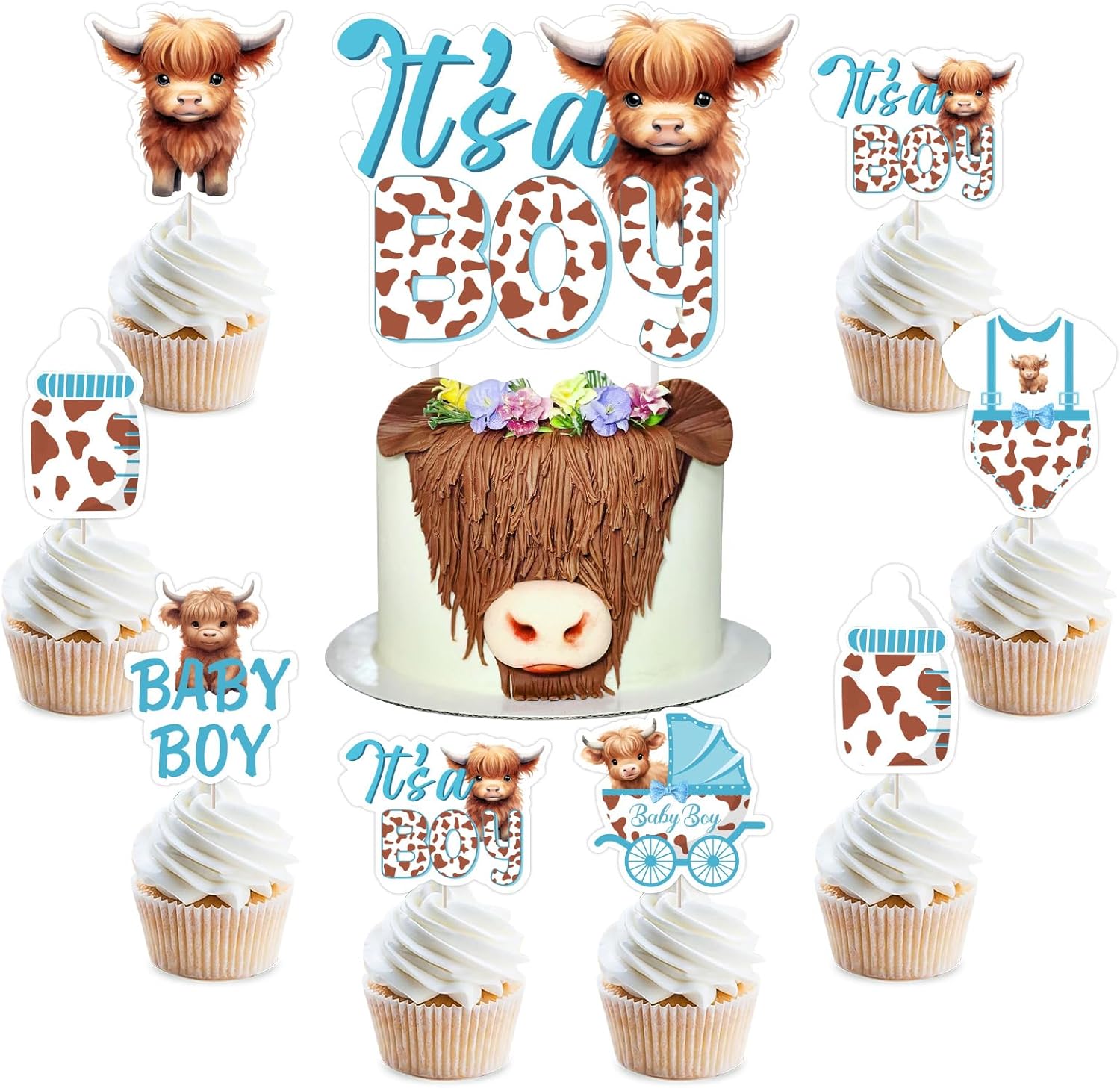 JOYMEMO Highland Cow Baby Shower Cupcake Toppers – Cartoon