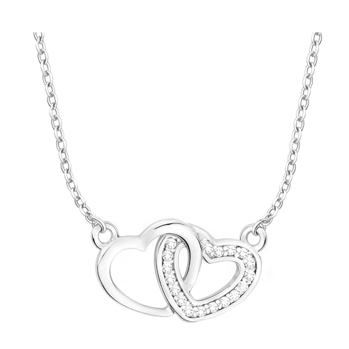 Sofia Milani - Damen Halskette 925 Silber - Mit Zirkonia Steinen - Doppel Herz Anhänger - 50032