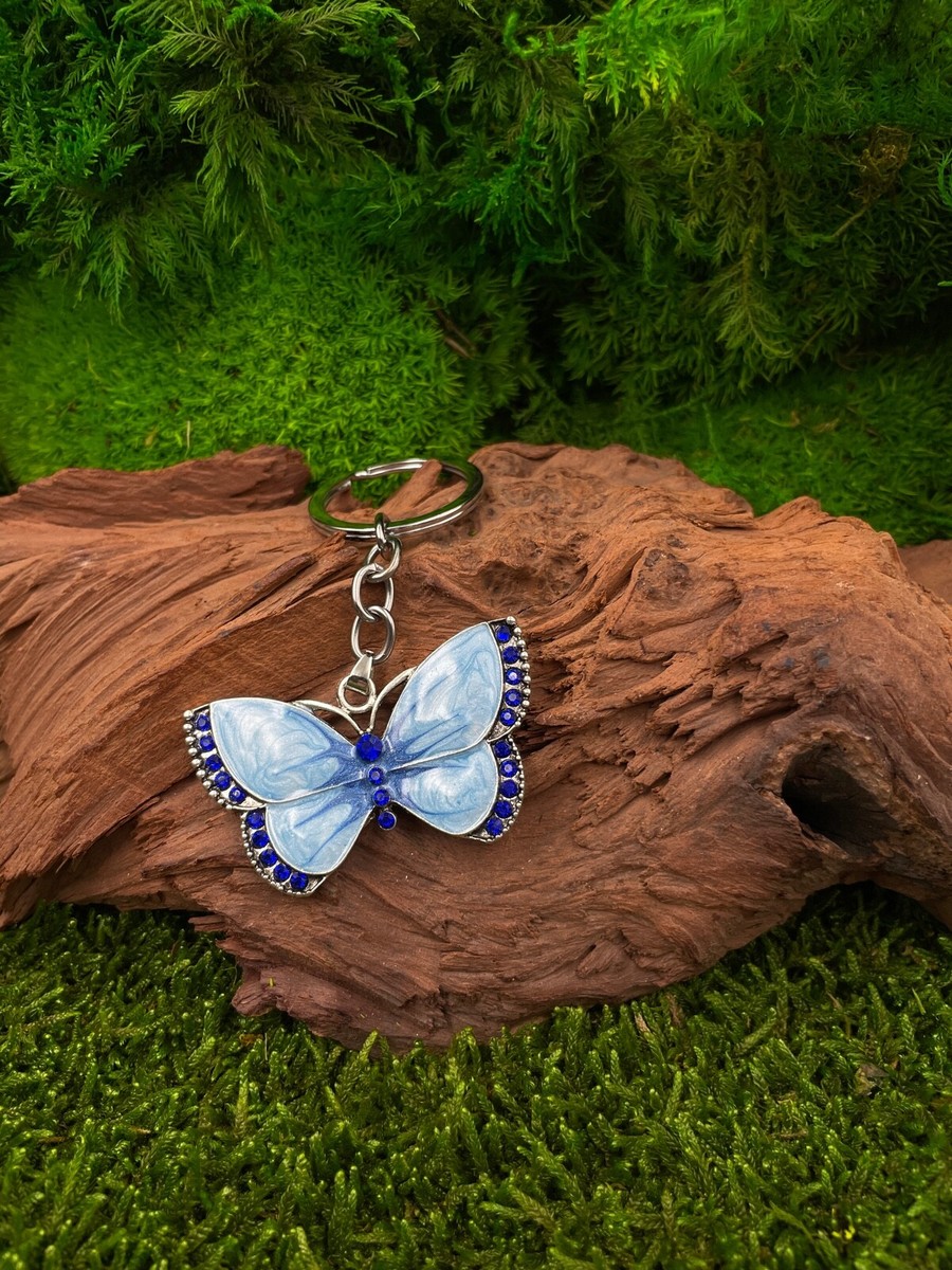 Schmetterling Falter Tier Weiß Strass Silber Schlüsselanhänger Anhänger