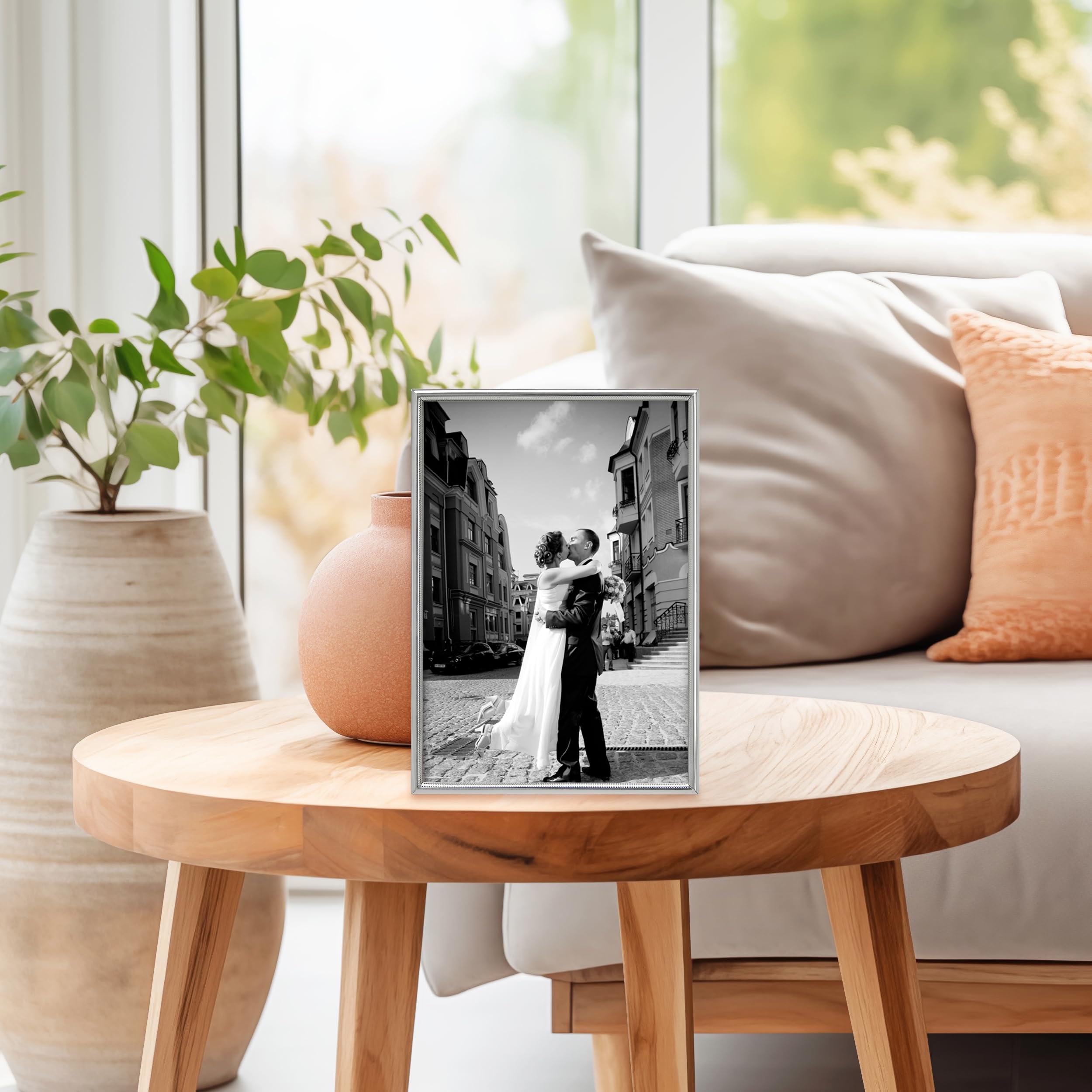 Siena Silberfarbener Perlen-Bilderrahmen, Anlaufgeschützte Oberfläche Walther Bilderrahmen Beyond 29,7x42 cm silber Silber-Finish: Ein wunderschönes Silber-Finish vergoldet die Innen- und Außenränder unseres eleganten Bilderrahmens und fügt eine klassische Palette hinzu, die zu jedem Dekor passt Umfangreiche Kollektion – Egal, ob Sie nach einem besonderen Stück suchen, das Ihre Wohnkultur betont, ein unvergessliches Geschenk für einen Kollegen oder einen geliebten Menschen oder den perfekten Bilderrahmen für geschätzte Erinnerungen suchen, Siena hat genau das, was Sie suchen Die Bilderrahmen von Siena halten Ihre Erinnerungen genau so, wie Sie sie wollen. Premium-Samt-Rückseite: Die Rückseite dieses Rahmens ist mit einem weichen, hochwertigen, auffälligen Espressobraunen Samt überzogen, der die Rahmen aus jedem Winkel gut aussehen lässt Ihre Verarbeitung verleiht den Kanten und dem Innenraum des Rahmens ein elegantes Aussehen, das sich perfekt in Ihr Zuhause einfügt, und ihre schönen espressobraunen Samtrücken sorgen für einen auffälligen Anblick, egal wo der Rahmen ist. Vielseitiges Layout – Orientieren Sie Ihre Bilder so, wie sie am besten zu ihnen passen, horizontal für Querformat oder vertikal für Hochformat. Unsere Rahmen sind perfekt für jedes Bild, das Sie haben, und sie werden Ihre Erinnerungen genau so präsentieren, wie Sie es wollen Silber-Finish – ein wunderschönes Silber-Finish vergoldet... Silber-Finish – ein wunderschönes Silber-Finish vergoldet die Innen- und Außenränder unseres eleganten Bilderrahmens und fügt eine klassische Palette hinzu, die zu jedem Dekor passt Entdecke unsere Exklusive Auswahl & TOP-Marken ✔ Unsere Rahmen sind perfekt für jedes Bild, das Sie haben, und sie werden Ihre Erinnerungen genau so präsentieren, wie Sie es wollen