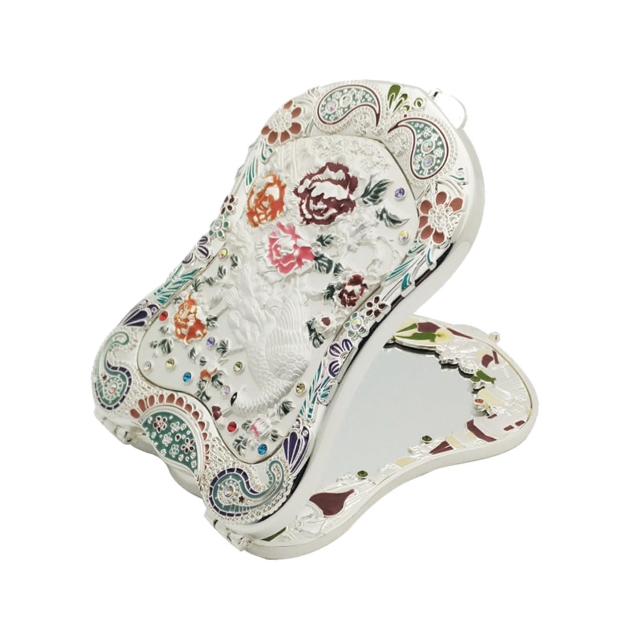 Minkissy Faltbarer Taschenspiegel Antiker Silberner Kosmetikspiegel Für Damen Kompakt Und Praktisch Für Handtaschen Für Make-up Unterwegs