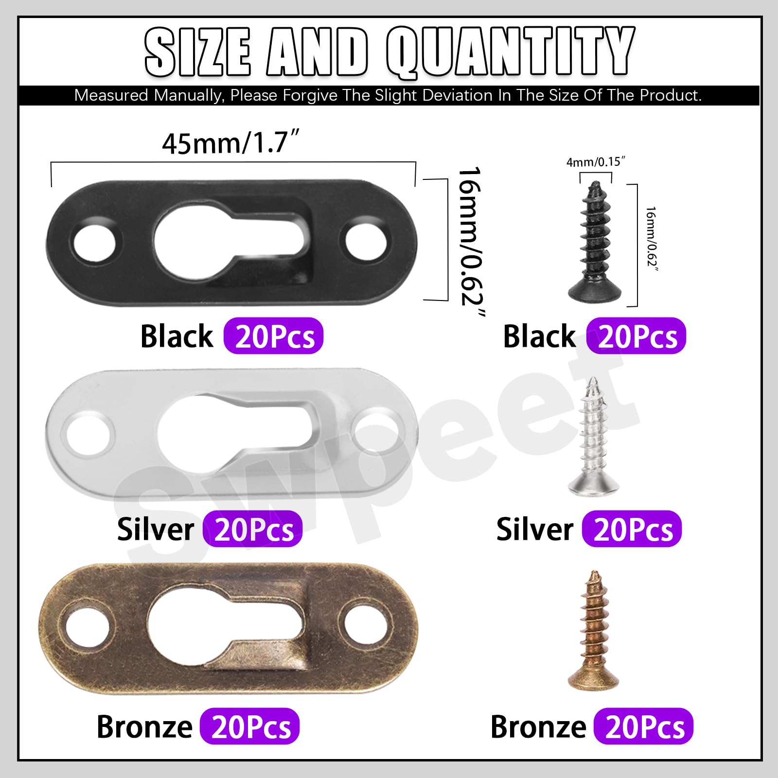 Swpeet 45 X 16mm Single Keyhole Bild Aufhänger Mit 80-Pcs Schrauben Metall Keyhole Frame Aufhänger Schlüsselloch Aufhänger Halterungen Für Spiegel Bilderrahmen Schrank (Kit, Single Keyhole Aufhänger