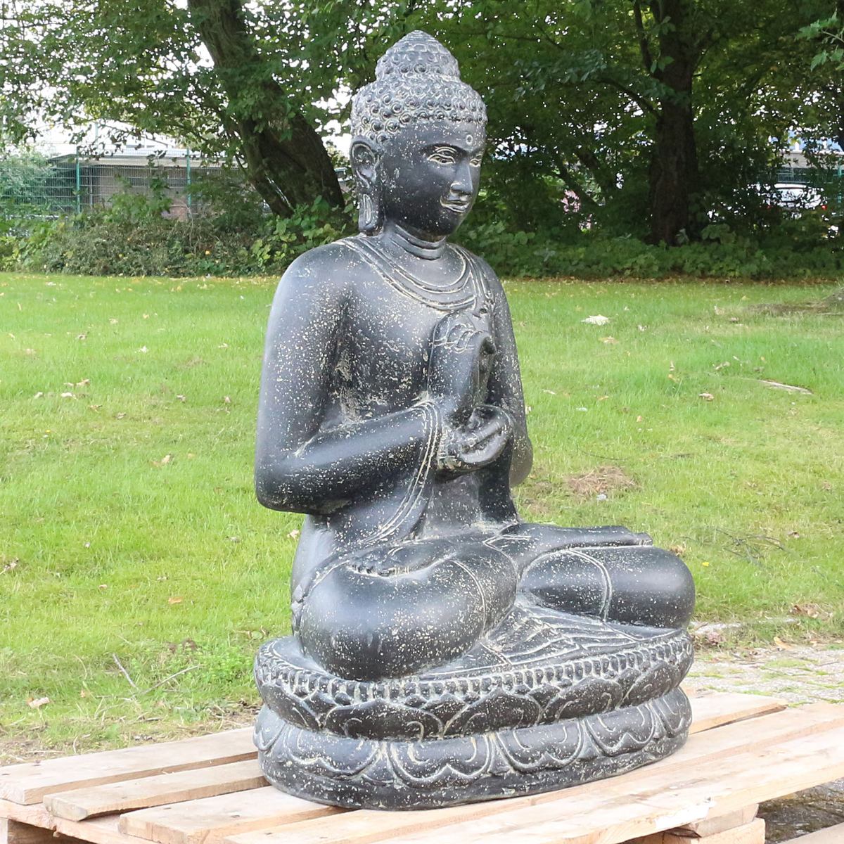 Sitzende Buddha-Figur "Chakra" 75cm Natur-Stein Garten-Deko Frostfest