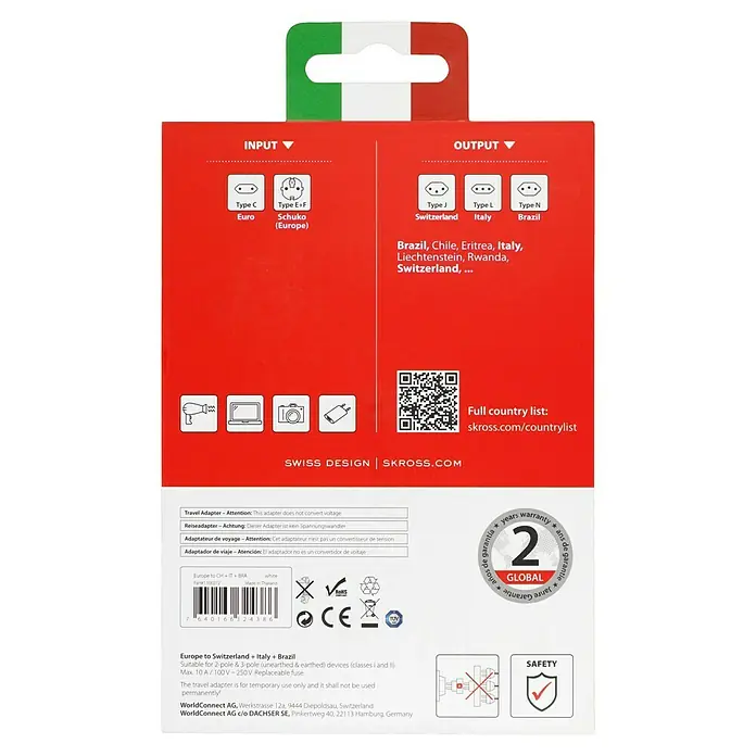Italien und noch mehr von Europa - vereint in einem Adapter! Mit diesem Reiseadapter ist Ihr Anschluss nicht nur in Italien, sondern auch in allen Ländern mit Schuko-Standard einfach wie nie Länderadapter Europa nach Italien Deutschland SKROSS Country Adapter World to Italy - SKROSS - Reiseadapter, USB Ladegeräte, Kabel, Powerbanks - Ihre perfekten Reisebegleiter von SKROSS: 2- und 3-Pol Adapter, Ladegeräte, Kabel und Powerbanks für Laptop, Smartphone, Tablet und mehr., ., SKROSS Country Adapter World to Italy World Travel Adapter Skross Travel Adapter - World To Europe | 7640166320111 Skross Reiseadapter ArtikelbeschreibungLieferumfangArtikelbeschreibung Die Country Adapter von SKROSS sind die ideale Lösung für die Reisende , die ein bestimmtes Land bevorzugen, sowie für Hotels und Seminarveranstalter, die ihren internationalen Gästen eine Anschlussmöglichkeit für deren Geräte bieten möchten. Bereits ab 21,90 € ✓ Große Shopvielfalt ✓ Testberichte & Meinungen ✓ | Jetzt Skross Country Travel Adapter India-Israel-Denmark to Europe (1.500217) günstig kaufen bei Auch leistungsstarke Geräte wie Laptop und Föhn können problemlos und sicher angeschlossen werden.