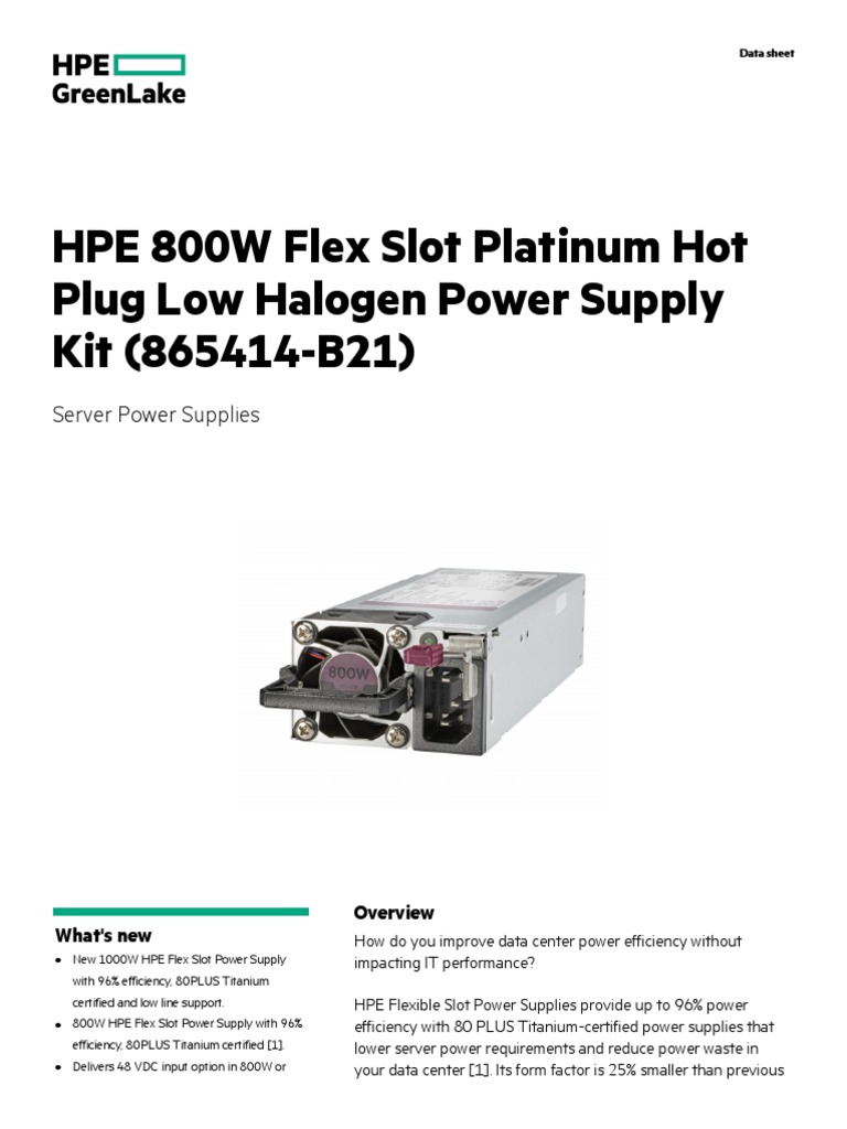 HPE Hewlett & Packard Enterprise 865414-B21 HPE 800W Flex Slot Platinum Hot Plug Lh Power Supply Kit 480 Gb Ssd Intern 156526926