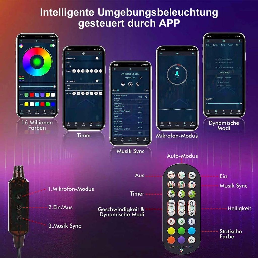 Smart Light Barhootao LEDIC Ambientebeleuchtung Für Gaming, Filme, PC, TV, Raumdekoration, Musiksynchronisation, Sprachabnehmer, 16 Millionen Farben, USB-Schnittstelle (ohne Adapter