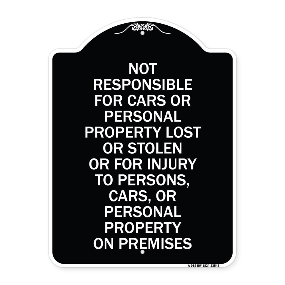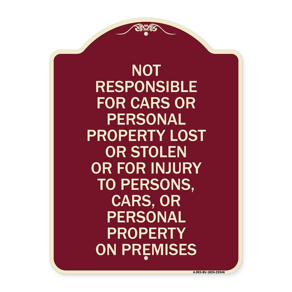 SmartSign Not Responsible For Cars Or Personal Property Lost Or
