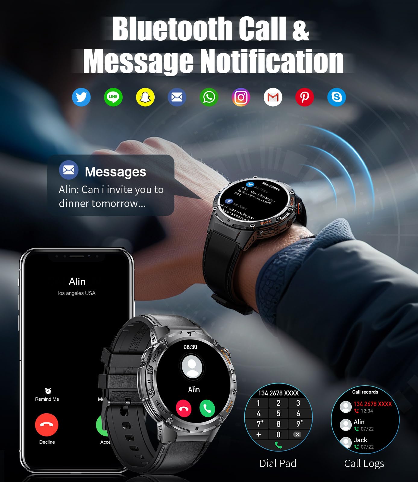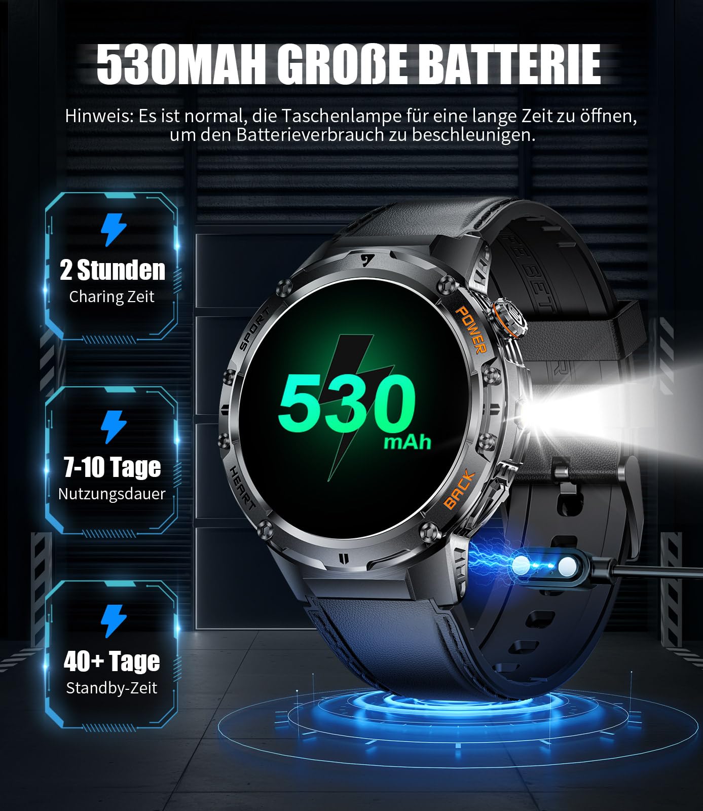 LIGE Integriertes GPS Smartwatch Herren, 1,43 Zoll AMOLED Smart Watch Mit LED Taschenlampe For Android & IOS, 5ATM Wasserdicht, 300+ Zifferblätter, Kompass/Höhenmesser, 170+ Sportmodi, Graphitschwarz