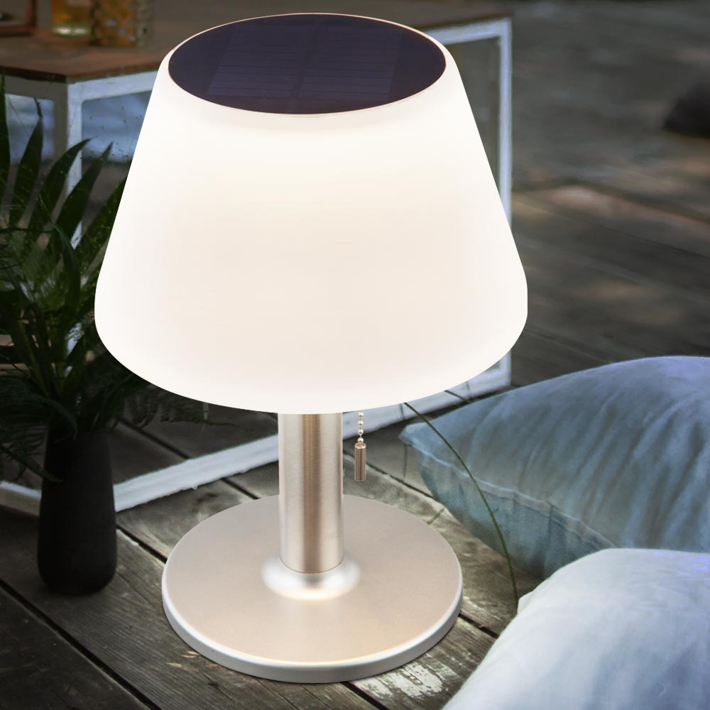 Konstsmide Serie ASSISI - Solar-Tischleuchte Material: Kunststoff Abmessungen: Höhe: 36 cm, Durchmesser: 19 cm Farbe: Weiß matt Leuchtmittel enthalten: Ja / LED - Fest verbaut (1 x 0,5 Watt) Lichtstärke: 1 x 30 Lumen = 30 Lumen Lichtfarbe: neutralweiß (4500 Kelvin) Bewegungsmelder: Nein Dämmerungssensor: Ja Solar Batterie: inkl. Mit dem Schalter können Sie die Leuchte leicht ein-/ausschalten und Dank IP44 auch im geschützten Außenbereich aufstellen und stehen lassen. 6 h (volle Sonnenenergie) An / Aus Schalter: Ja - AN / AUS Schalter Schutz: Schutzart: IP44 Gewicht: 0,75 kg Genießen Sie die stillen Stunden oder feiern Sie gemütlich mit Ihren Freunden., ., ., Stellen Sie die Tischleuchte ASSISI bereits tagsüber nach draußen, damit die 3 Akkus sich in der Sonne aufladen können. je 3 x AAA Ni-MH Akku-Batterien, 600mAh 1,2V (nicht vorgeladen) , Maße je B/T/H ca., : 19 x 19 x 36 cm Diese wunderschöne Tischleuchte erhellt Ihren Sitzplatz im Garten mit einem wunderschönen Licht. Konstsmide LED-Tischleuchte Antibes Schwarz ø 13 cm x 19 cm kaufen bei OBI Solar Tischlampe 2er Set Solar LED Leuchte Mit 3-Stufen Dimmer ASSISI, Höhe 14,5cm, IP44 Cherry Outdoorlampe Kombinieren Sie gerne mehrere Farben um immer neue Dekorationen zu zaubern. Die Tischlampe ASSISI ist in den Farben gelb, weiß, grün und schwarz erhältlich. Konstsmide 7109-202 Assisi Outdoor Tischleuchte weiß Solar Tischleuchte ASSISI - Konstsmide 7109-752 - KS Licht