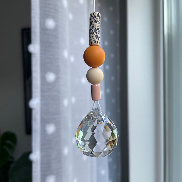 Sonnenfänger Schlichter Suncatcher Mit Holzperlen Und Einer Perle Aus Lavastein, Sonnenkristall Zur Wohnraumdeko Oder Als Fensterdeko