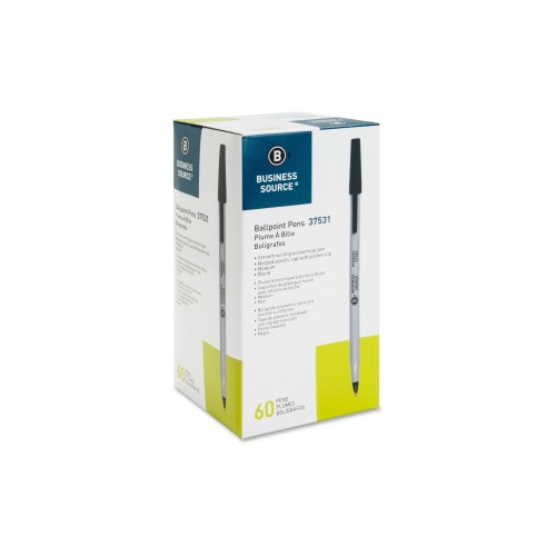 Business Source Ballpoint Stick Pens - Black - Medium Point - Box