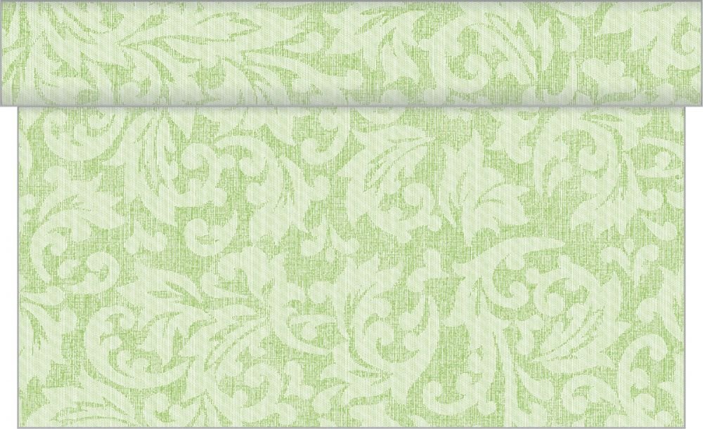 Sovie HORECA Tischläufer MIKA In Pistazie Aus Linclass-Airlaid, 40cm X 24m, Perforiert Alle 120cm, Ornamentdesign Ton-in-Ton, 1 Rolle, Eleganter Einwegtischläufer Für Stilvolle Tischdekoration