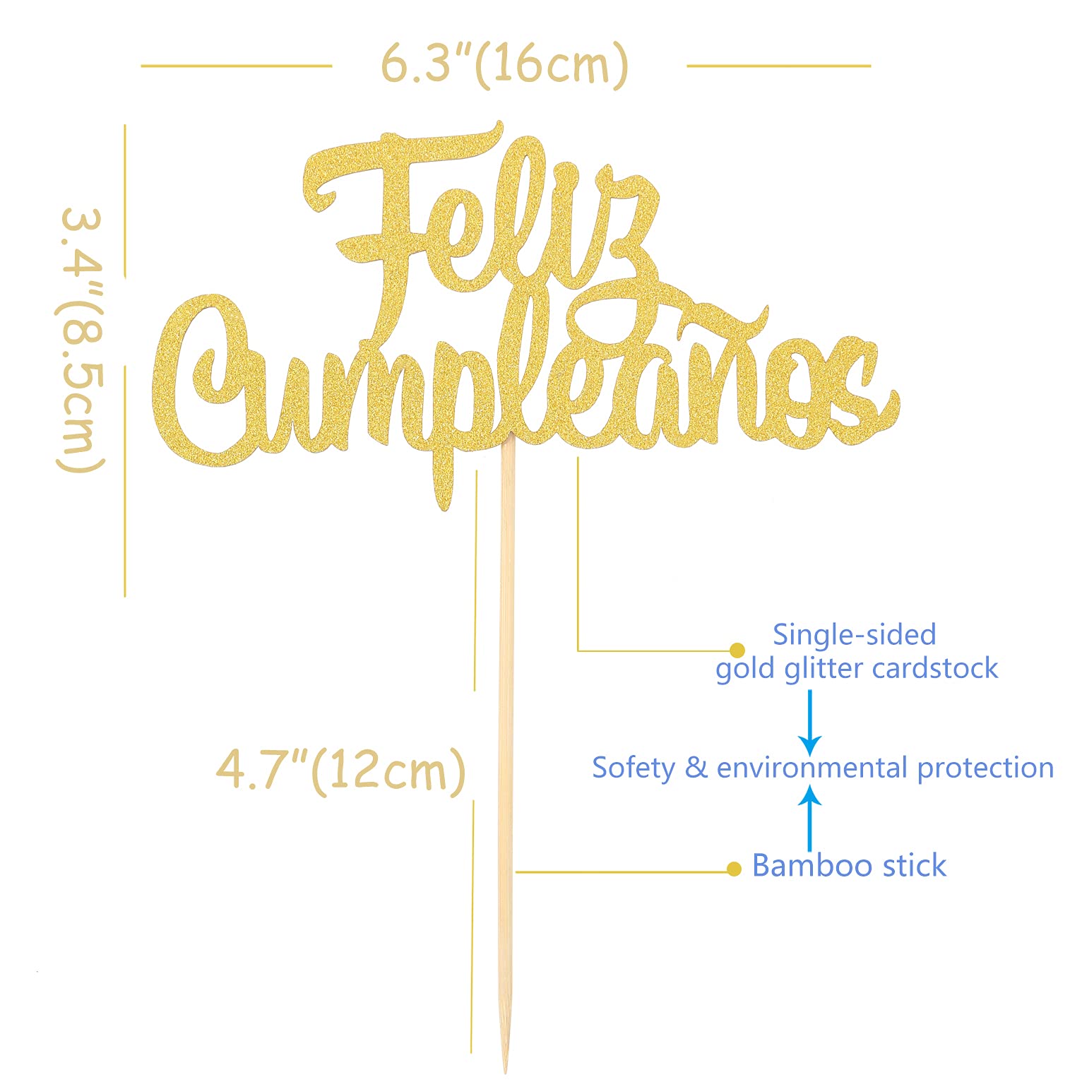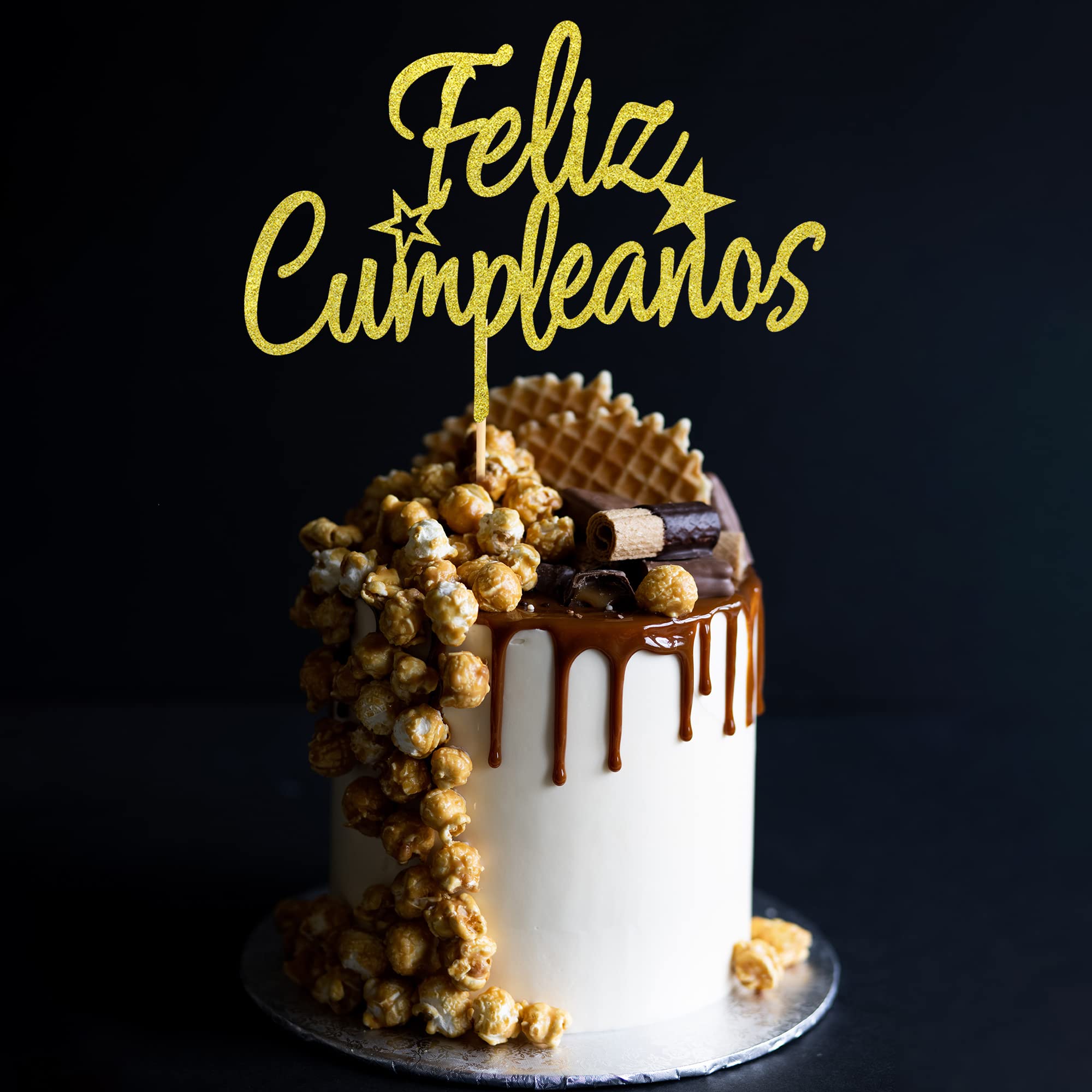 Spanischer Feliz Cumpleaños Tortenaufsatz - Goldener Glitzer "Happy
