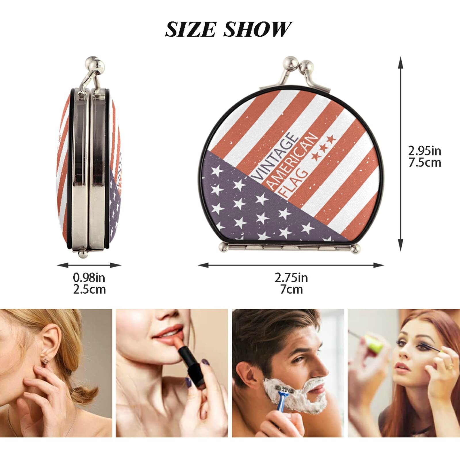 Dwrepo Taschenspiegel Mit USA-Flagge Und Adler, Make-up-Spiegel, Metall, Taschen-Kosmetikspiegel Für Geldbörse, 1 X / 2-fache Vergrößerung, Reisespiegel, Geschenk Für Frauen, Faltbar, Handheld