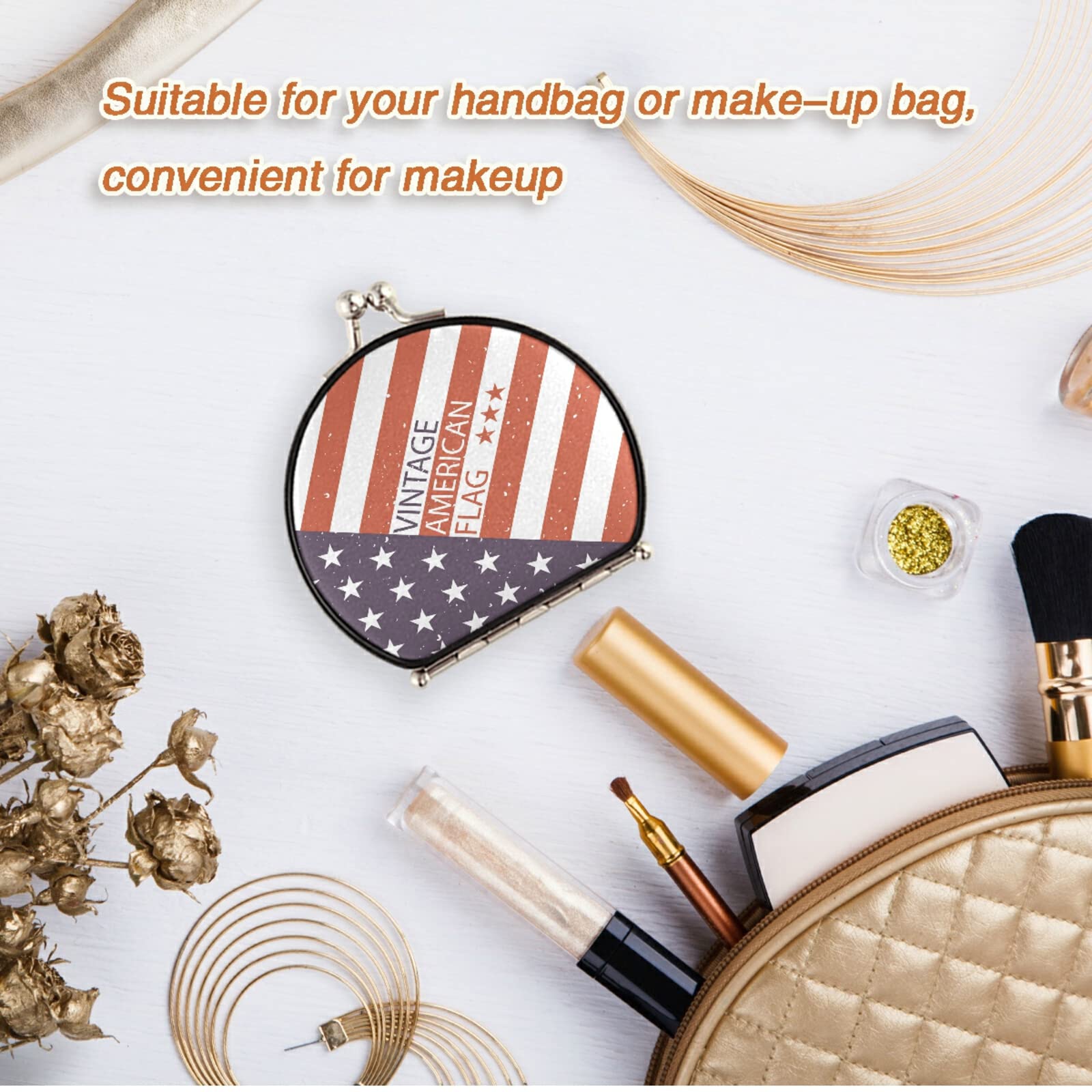 Kleiner Runder Spiegelanhänger Reisen Kompakter Spiegel Verschiedene Designs stehen Ihnen zur Auswahl, passend zu Ihrer Brieftasche und Handtasche. Es kann mit Ihrer Kleidung, Geldbörsen, Rucksäcken usw., kombiniert werden. ✅ LUXUS DESIGN - Die Spiegeloberfläche ist mit exquisiten Mustern eingelegt, um Ihren Spiegel luxuriöser und modischer aussehen zu lassen. Elegante Damen sind beliebter. Es ist sehr klein und wird Sie nicht belasten. Dieser elegante Make-up-Spiegel in Roségold ist genau das, was Sie brauchen. Wenn sie in den Händen gehalten werden, macht sie eleganter und charmanter. Könnte beinhalten: Zwei Kompaktspiegel in Geschenkboxen. Ein Spiegel ist roségoldfarben mit einem floralen Design. Personalisierter Brautjungfern Mini-Make-up... Handtaschenspiegel Klein Dwrepo Taschenspiegel Mit USA-Flagge Und Adler, Make-up-Spiegel, Metall, Taschen-Kosmetikspiegel Für Geldbörse, 1 X / 2-fache Vergrößerung, Reisespiegel, Geschenk Für Frauen, Faltbar, Handheld Taschenspiegel Mit Vergrösserung Sie können es sanft in Ihre Tasche stecken und jederzeit an Ihrer Seite erscheinen.