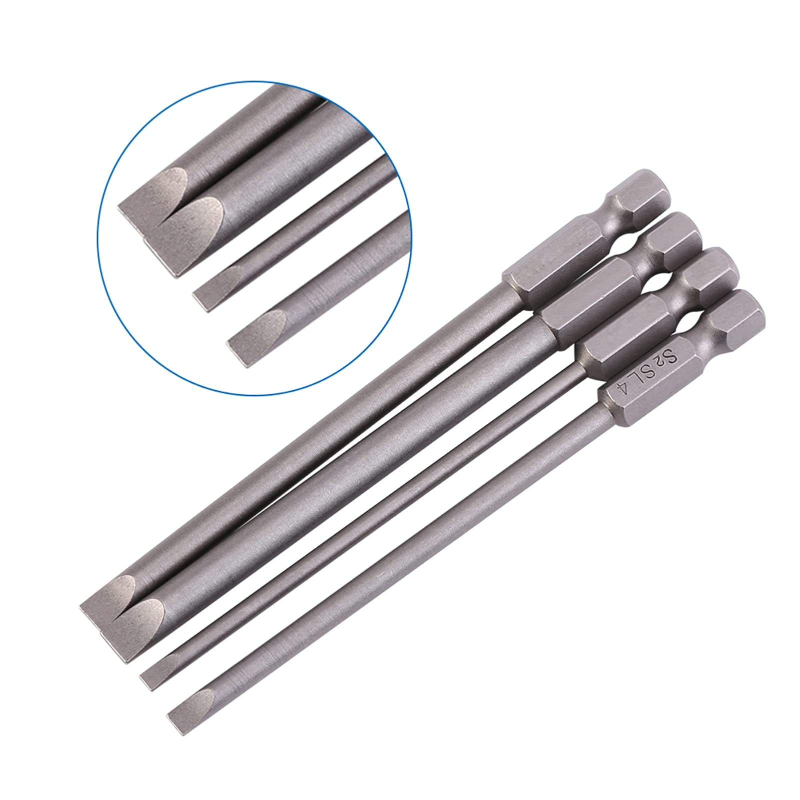 4-teilig Schlitz Spitze Schraubendreher Bits Set S2-Legierungsstahl 100 Mm Magnetisch 1/4" Sechskantschaft Schlitzschraubendreher-Bitsatz SL3 SL4 SL5 SL6 3 Mm-6 Mm-Schraubendreher-Satz