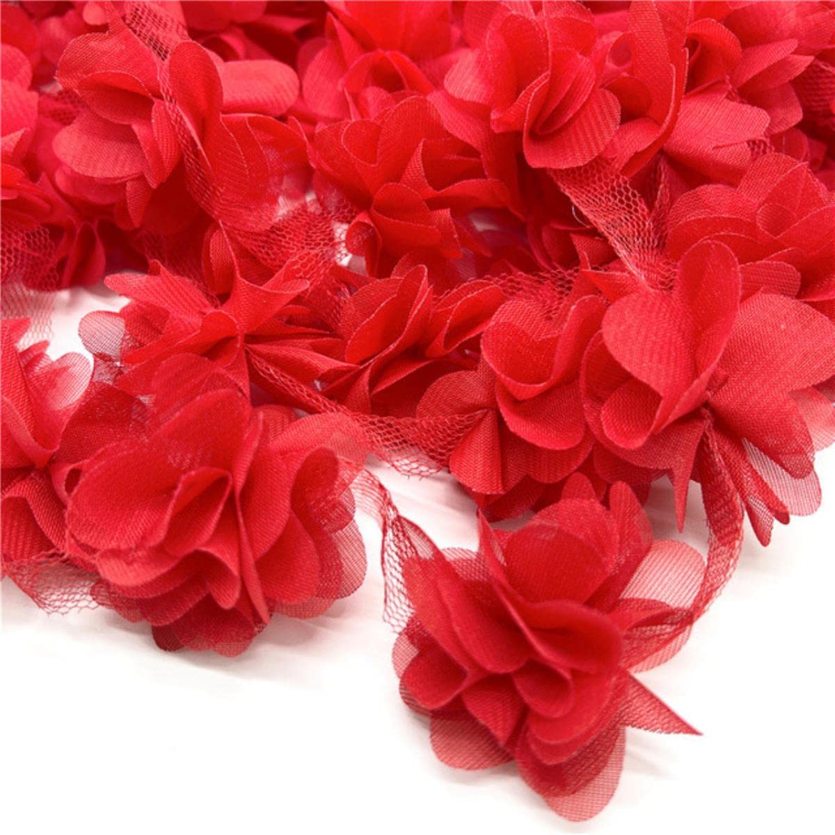 GORGECRAFT 5cm 5 Yards 3D Chiffon Cluster Blumen Spitzenband Chiffon Kantenbesatz Vintage Blumen Dekorationsband Blumen Stoffapplikation Für Kleid Kopfbedeckung DIY Nähen Hochzeitsdekoration
