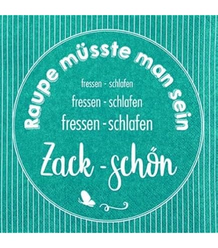Maße: Die Motivservietten sind offen aufgelegt 33x33cm. Diese sind jeweils 3-lagig, dadurch nicht zu dünn. Natürlich können die Servietten auch für Bastelarbeiten mit Serviettentechnik verwendet werden. Umwelt: Die Herstellung findet nur aus umweltfreundlichen Rohstoffen statt und sind biologisch abbaubar. Die trendigen Motive gestalten jede Mahlzeit zum genussvollen Erlebnis. In der Packung gefaltet auf 16,5x16,5cm. Produktdetails:- Motivservietten - Design wie Abbildung (Farbabweichungen möglich) - Abbildung = ¼ der Serviette- Rückseite unbedruckt- 3-lagig - 1 Packung á 20 Stück - Format offen: 33x33cm - gefaltet auf: 16,5x16,5cm - Material Papier (Tissue) - hergestellt in Europa - umweltbewusste und -schonende Produktion Wir bieten die schönsten Motive aus der Serviettenkollektion von den bekanntesten deutschen Herstellern. 20 Stück weiche, umweltfreundliche und gut faltbare Tissue-Servietten im Design "Lasst uns das Leben feiern". Mann 20 Servietten Sonnenaufgang | Spruch | Text | Tischdeko 33x33cm Servietten Geburtstag Hier in unserem Shop finden Sie außerdem passend abgestimmte Kerzen, Taschentücher, Tischläufer, Mitteldecken und ein beinahe unbegrenzt vielseitiges Sortiment an weiteren Servietten! Diese schönen weißen Party-Servietten mit der Aufschrift "Lasst uns das Leben feiern" passen zu jeder lockeren Runde und besonders in die aktuelle Zeit, nach den Corona Einschränkungen. Sie sehen im Hauptbild 1/4 des Motives. Servietten Tischdeko Geburtstag Essen Lieblings-Gäste 20 Stück 3