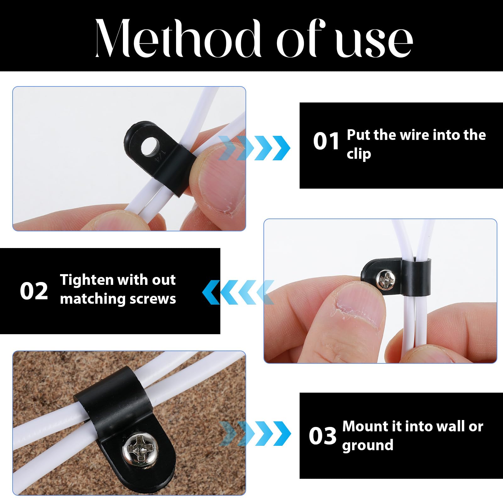 Glarks 120 Stück 1,27 Cm Schwarze Nylon Schraubmontage R Typ Kabel Clip Drahtklemme Schrauben Kabelkanal