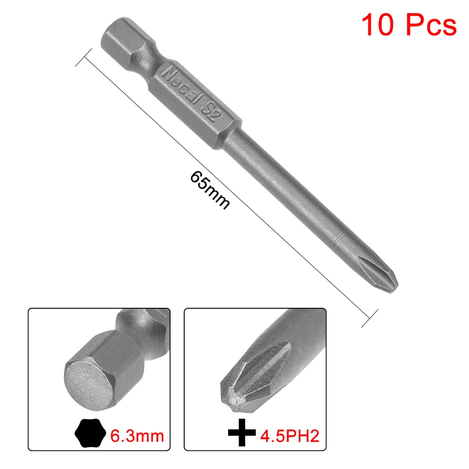 Material: S2 Lieferumfang: 5 x Kreuzschlitz-Schraubendreher-Bits. 【Größe】 PH2 Kreuzkopf, 6 mm Durchmesser, 6 mm Sechskantschaft, 50 mm Gesamtlänge. * Stark magnetisch, kann die Schrauben leicht ansaugen, wenn es verwendet wird. * Exquisite Verarbeitung, jede Kante kann präzise arretiert werden, keine Beschädigung der Schraube und des Schraubendreherkopfes. Spezifikationen: Schaftgröße: (Hex) 0,64 cm., Bit-Typ: PH2 (#2)., Bit-Durchmesser: 6 mm., Gesamtlänge: 50 mm., Oberflächenbehandlung: Sandstrahlen. * Diese Bits passen für elektrische Schraubendreher, Handschraubendreher, elektrische Bohrmaschinen, Luftbohrmaschinen und so weiter. Uxcell 5 Stück 6 Mm PH2 Magnetische Phillips-Schraubendreher-Bits, 1/4 Schraubendreher Wiha mit Bitmagazin PocketMax® magnetisch * Hergestellt aus S2-Legierungsstahl, einem häufig verwendeten Material in Hardware mit hoher Härte. Magnetische Spitze: Die magnetische Bitspitze hält Schrauben sicher vor der Installation und nach dem Herausnehmen für eine höhere Effizienz.
