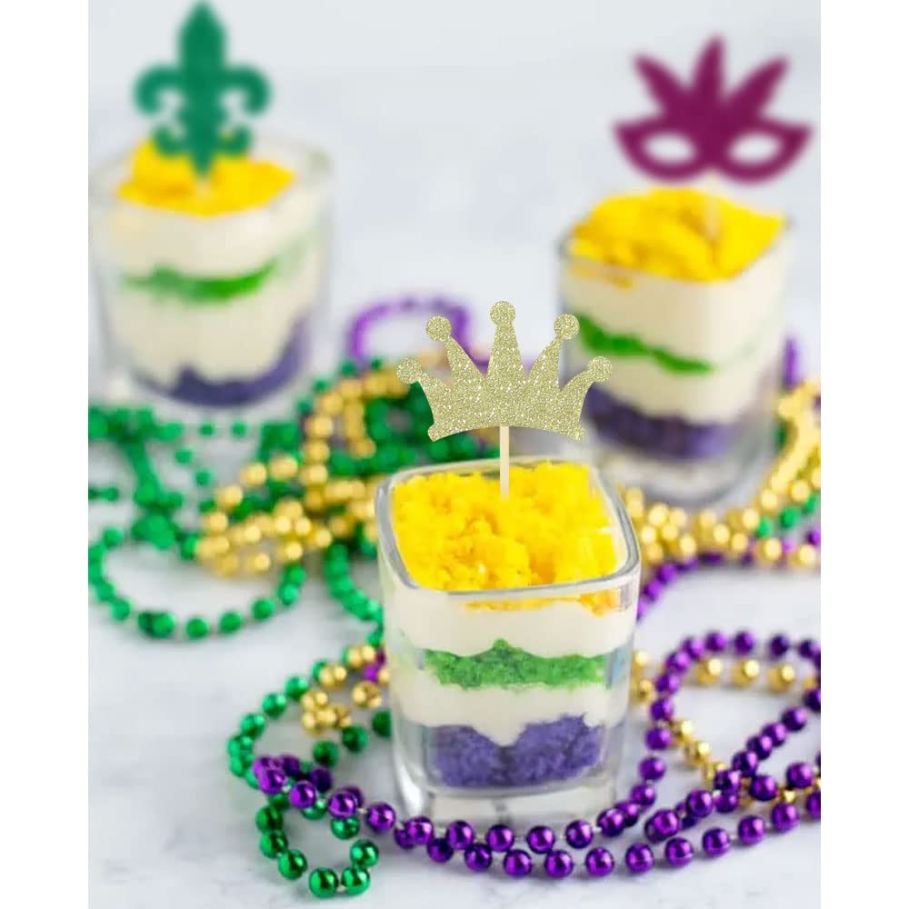 Keine-Chaos Reales Gold Glitter ssert Cupcake Topper Gold Glitter Masken Ausstecher 24 Stück Abschluss Cupcake Topper Glückwunsch 2024 Kuchendeko Karneval Convenient and easy to apply: the mask cupcake picks is pre-assembled, you don't need to stick them by yourself, each one of them is awesome, attractive and exquisite, wonderful decoration for embellishing the birthday party, baby shower and so on Ample quantity: There are 24 pieces of Mardi Gras glitter cupcake toppers in this package, with 3 different styles, crown, masquerade and fleur de lis in golden, purple and green colors; They are enough to satisfy your different decoration needs for cake, bread and other food at Mardi Gras parties Wide applications: the glitter cupcake supplies are great for a Mardi Gras party, nice decorating pieces for a modern and playful masquerade parties, fun cupcake toppers for cakes, cupcakes and desserts