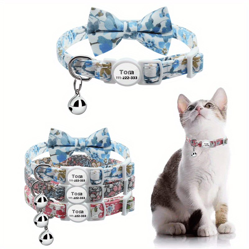 2 Stück Katzenhalsbänder Mit Fliege Und Glocke Personalisierte
