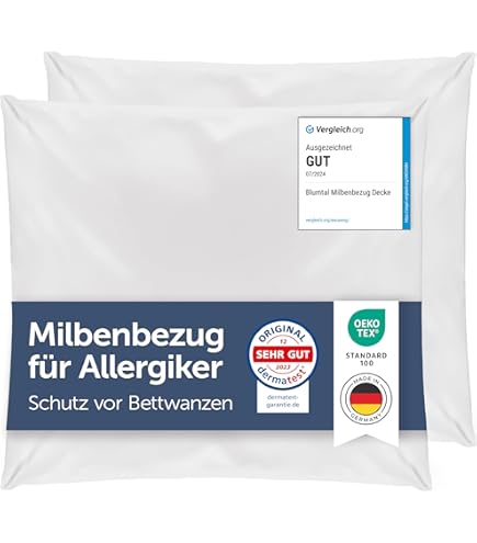 IDEAL FÜR ALLERGISCHE PROPHYLASSE Die Bettwäsche aus der Linie Cotton besteht aus 100% pflanzlichen Naturfasern und bietet Komfort, Atmungsaktivität und hervorragenden Schutz vor Hausstaubmilben und Allergenen ohne Zusatz von Chemikalien. Deshalb ist es wichtig, sich mit milbendichter Bettwäsche auszustatten, um Ihr Wohlbefinden zu schützen. Kissenbezug 100X50 – Die 15 besten Produkte i Vergleich Lieferumfang: 1 Kissenbezug für Betten mit den Maßen 50 x 80 cm. KISSENBEZUG MIT REISSVERSCHLUSS - Um maximale Wirksamkeit zu gewährleisten, werden unsere Bezüge mit Reißverschluss die Kissen vollständig umhüllt. Milbendichter Kopfkissen-Bezug aus dicht gewebtem Baumwollgewebe nach Ökotex 100, abnehmbar mit Reißverschlüssen an zwei Seiten, waschbar bis 60 Grad, trocknergeeignet Das macht der Allergikerbezug Milbenbettbezug Evolon für Allergiker von Blumtal ganz gut: »Klassisches Encasing-Schutzgewebe (Evolon)« ⭐ Gibt es auch Schwächen? Jetzt neutral informieren! Die Milbenschutzbezüge der Linie Cotton sind aus 100% natürlichen pflanzlichen Fasern, die für diejenigen entwickelt wurden, die sich in natürliche Stoffe einwickeln möchten. Kissen 50x80 Allergosystem Set 2 Stück Kissenbezug Milbenschutz, 50 X 80 Cm Pillow Protector Sie sind ideal für Hausstaubmilbenallergiker und für diejenigen, die Stoffe aus natürlichen Materialien statt Synthetik bevorzugen. Die Produkte der Linie 100% BAUMWOLLE sind Medizinprodukte der Klasse 1 und erfüllen die Standardanforderungen für den Gesundheitsschutz gemäß der Richtlinie 93/42/EWG. Atmungsaktiver Stoff Die Produkte der Baumwolllinie bieten Komfort, Atmungsaktivität und hervorragenden Schutz vor Hausstaubmilben und Allergenen ohne Zusatz von Chemikalien. Hergestellt in Trentino - Schlafen Sie ruhig mit dem Schutz und dem Komfort eines hypoallergenen Anti-Milbenkissenbezugs, der mit Sorgfalt im Herzen des Trentino in Rovereto hergestellt wurde. Linie Baumwolle - Hergestellt aus 100% Baumwolle, ist es die ideale Lösung für diejenigen, die einen effektiven Milbenschutz wünschen, ohne auf hervorragende Atmungsaktivität und Frische zu verzichten. Sie können bei bis zu 60° in der Waschmaschine gewaschen und effektiv mit einem Mikrofasertuch gereinigt werden. Die Bettwäsche aus der Linie Cotton besteht aus 100% pflanzlichen Naturfasern und bietet Komfort, Atmungsaktivität und hervorragenden Schutz vor Hausstaubmilben und Allergenen ohne Zusatz von Chemikalien. Zur Bekämpfung von Milben und Allergien, die sie auslösen... Seit 1994 in Allergosystem, spezialisiert auf Anti-Milben-Bettwäsche, wird jedes Produkt mit der Liebe und Aufmerksamkeit einer Familie zum Leben erweckt, die das Wohlbefinden seiner Kunden zu einer wahren Mission gemacht hat. Pflegeleicht, die Anti-Milben-Bezüge und Matratzenbezüge der Linie Baumwolle bieten vollständigen Schutz vor Hausstaubmilben und eine Wirksamkeit von 20 Jahren. Garantierte Wirksamkeit Mit Stoffen, die Partikel unter 5 Mikron filtern, blockieren unsere Anti-Milben-Abdeckungen 99,99% aller Allergene.