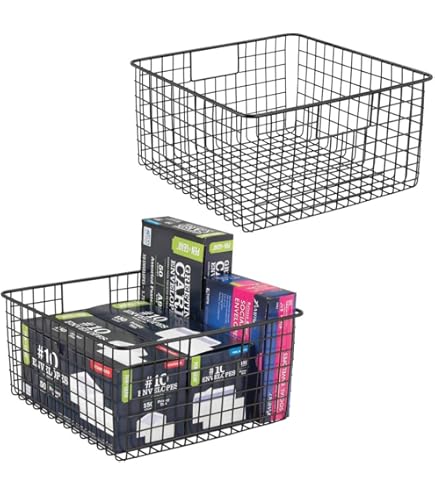 Praktische ausgeschnittene Griffe: Mit praktischen ausgeschnittenen Griffen lassen sich diese Metall-Hängekörbe leicht von Regalen ziehen, aus Schränken oder in verschiedene Bereiche Ihres Hauses oder Büros transportieren. Robuste Konstruktion: Hergestellt aus massivem Eisen mit hoher Härte, sind unsere Drahtaufbewahrungskörbe für die Ewigkeit gebaut. Das kompakte Design ermöglicht es Ihnen, sie vertikal zu stapeln oder nebeneinander zu verwenden, wodurch sie perfekt für kleine Räume sind., Produktdetails: Material: Eisen. Die abgerundeten Ecken minimieren Aufprallschäden, während die fest verschweißte Metallstruktur für hervorragende Robustheit und Haltbarkeit sorgt. Das offene Drahtdesign des Korbes bietet eine einfache Sichtbarkeit der aufbewahrten Gegenstände, so dass Sie auf einen Blick leicht finden, was Sie brauchen. Einfache Installation – Diese Drahtaufbewahrungskörbe werden mit selbstklebenden Haken geliefert, sodass Sie sie mühelos an der Wand montieren können, ohne Schäden zu verursachen. Willkommen in unserem Shop. Drahtkörbe Für Kleidung HUOMAQFAN 4 Stück Metall Einhängekorb Schrank Schrankkörbe Drahtkorb Für Küchen Unser Sortiment an Drahtkörben mit Auszug hilft dir dabei und fügt sich nahtlos in deine Raumgestaltung ein. Ihr einfaches und vielseitiges Design macht sie zu einem Must-have für jedes Zuhause, das ein bisschen mehr Ordnung braucht Größe: 28 x 12 x 12 cm, 38,5 x 15,5 x 14 cm., Farbe: Schwarz. 4 Stück Aufbewahrungskorb Draht Schwarz Metall Drahtkorb, Draht Körbe Organizer für Bad, Kühlschrank, Büro, Gefrierschrank, Schrank, Regal, 28 x 22 x 12 cm Genießen Sie eine problemlose Installation und einfache Organisation überall in Ihrem Zuhause oder Büro. Drahtkorb schwarz tolle Angebote