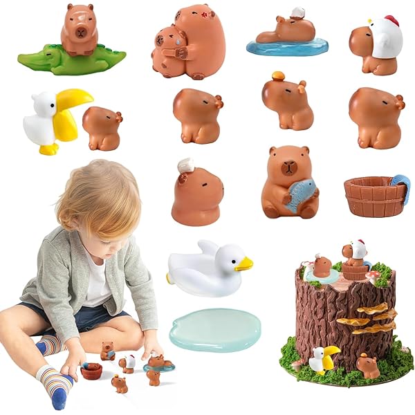 Figuren Mini Capybara Figuren,Capybara Figuren | Mini Capybara Harzstatue 9 Stück Mini Capybara Figuren, Kleine Capybara Figuren Aus Kunstharz, Tiere Für Miniatur Garten, Zuhause, Desktop Dekoration Mini Tiere Suchergebnis Auf Für: Capybara Figuren Mini Produktbeschreibungen Mini Capybara Figuren, 19 Stück Miniatur Niedliche Capybara Harz Tiere für Feengarten Bonsai Miniatur Landschaft Desktop Puppenhaus Warnhinweise Keine Warnung 【Mini Capybara Figuren】 Das Paket wird mit 19 Stück niedlichen Cartoon-Figuren geliefert. ZhouWei 19 Stück Mini Capybara aus Kunstharz, Mini Wasserschwein Figuren, Kleine Capybara Figuren Set, Tiere Miniatur Zubehör, für Bonsai, Miniaturlandschaft, Torte, Schreibtisch, Puppenhäuser Ob zum Geburtstag, zu Weihnachten, zu Feiertagen oder einfach nur als kleine Überraschung, sie zaubern sicher ein großes Lächeln 【Niedliches und charmantes Design】 Diese Puppenhaus-Miniatur-Harz-Capybaras haben niedrige Haltungen, Ohren und Ausdrücke, wodurch sie sehr lebendig und energisch sind, bringen Freude und Kreativität in jede Umgebung 【Perfektes Geschenk】 Dies ist ein lustiges und durchdachtes Geschenk für Capybara-Liebhaber, Sammler und Menschen, die Miniaturmodelle lieben.