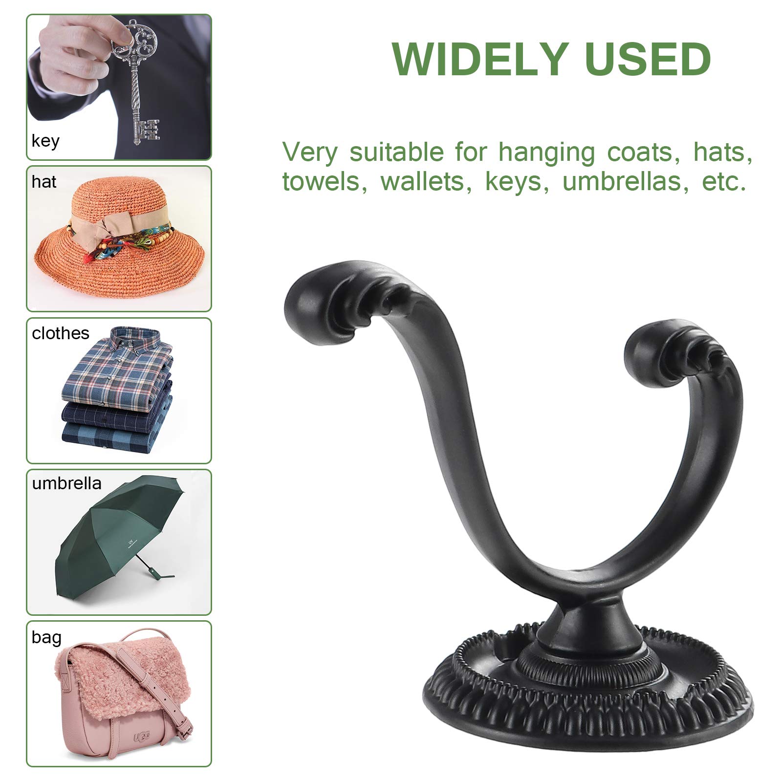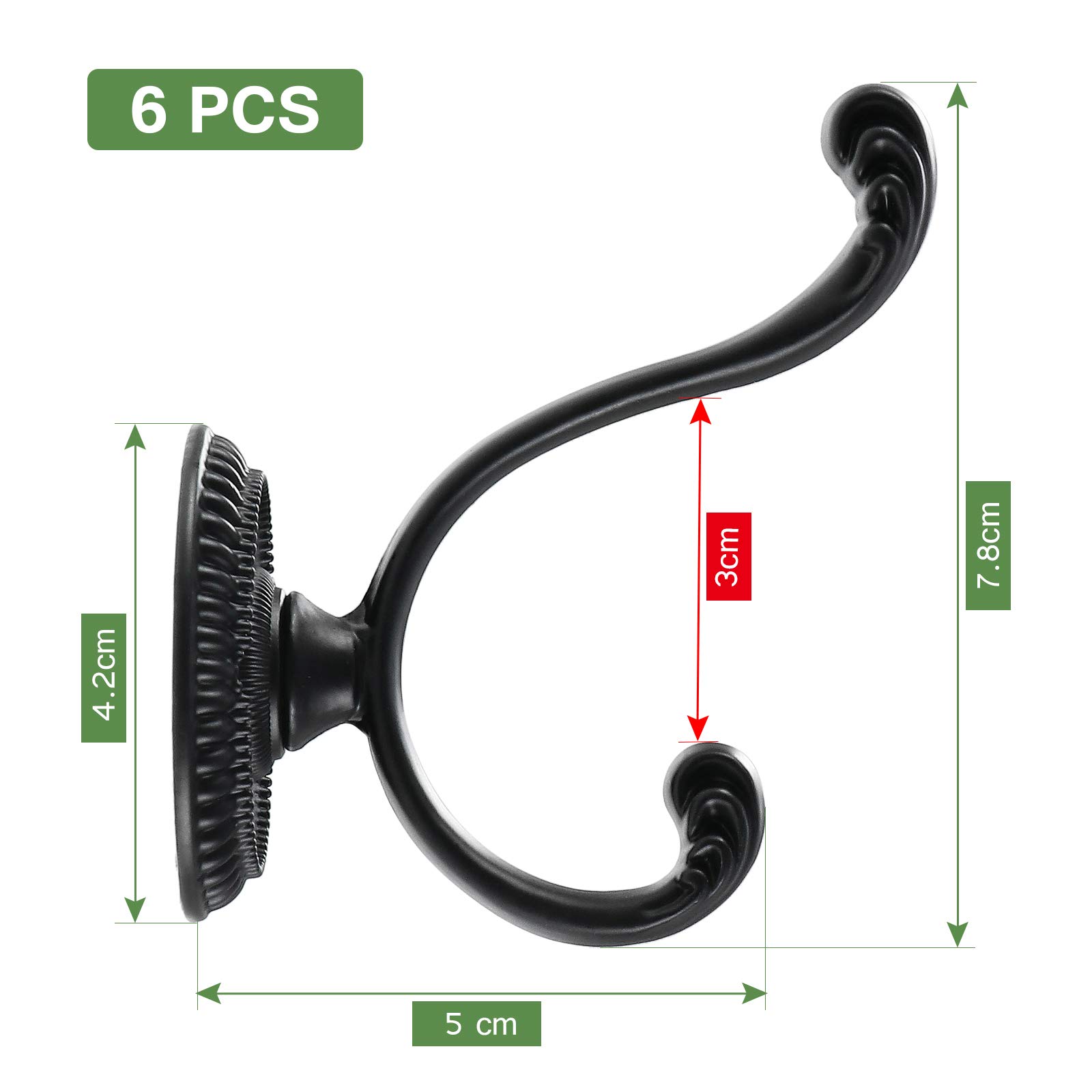 Garderobenhaken Vintage 6 Stück Vintage Antik Doppel-Türhaken – Wandmontierter Wandhaken Vintage Wandmontierter Küchenarmatur, Vintage-Waschtischarmatur mit Messing... Spezifikationen: Material: Legierung., Größe: 53 x 41 mm., Farbe: Schwarz., Menge: 6 Stück., Eigenschaften: 1., Mit lackierter Oberfläche funktioniert in feuchten Klimazonen sowie Garagen und Terrassen, bleibt glänzend 2., Seine glatte Oberfläche macht es perfekt zum Aufhängen von Mänteln, Hüten, Handtüchern, Geldbörsen und so weiter 3., Bietet eine Fülle von Platz zum Aufhängen von Gegenständen in der Eingangshalle, Waschküche, Bad, Schlafzimmer und Schränken Paket: 6 x Doppeltürhaken., 12 x Schrauben. Material: Doppelte Kleiderhaken bestehen aus Zinklegierung und Schrauben sind aus Eisen, robust und langlebig, nicht leicht zu brechen und können Rost und Erosion widerstehen 6 Stück Vintage Antik Doppeltürhaken – Wandmontierte dekorative Kleiderhaken für Küche, Schlafzimmer, Badezimmer – Schraubhaken für Bademäntel und Huthaken mit Schrauben 6 Stück Vintage Kleiderhaken Türhaken Haken Vintage Wand Seine glatte Oberfläche macht es perfekt zum Aufhängen von Mänteln, Hüten, Handtüchern, Geldbörsen und so weiter Einfach zu installieren: Kleiderhaken sind sehr einfach zu installieren, verstärkt mit zwei Schrauben, passen gut zusammen, empfohlen für die Montage auf Massivholz oder Holzschrauben